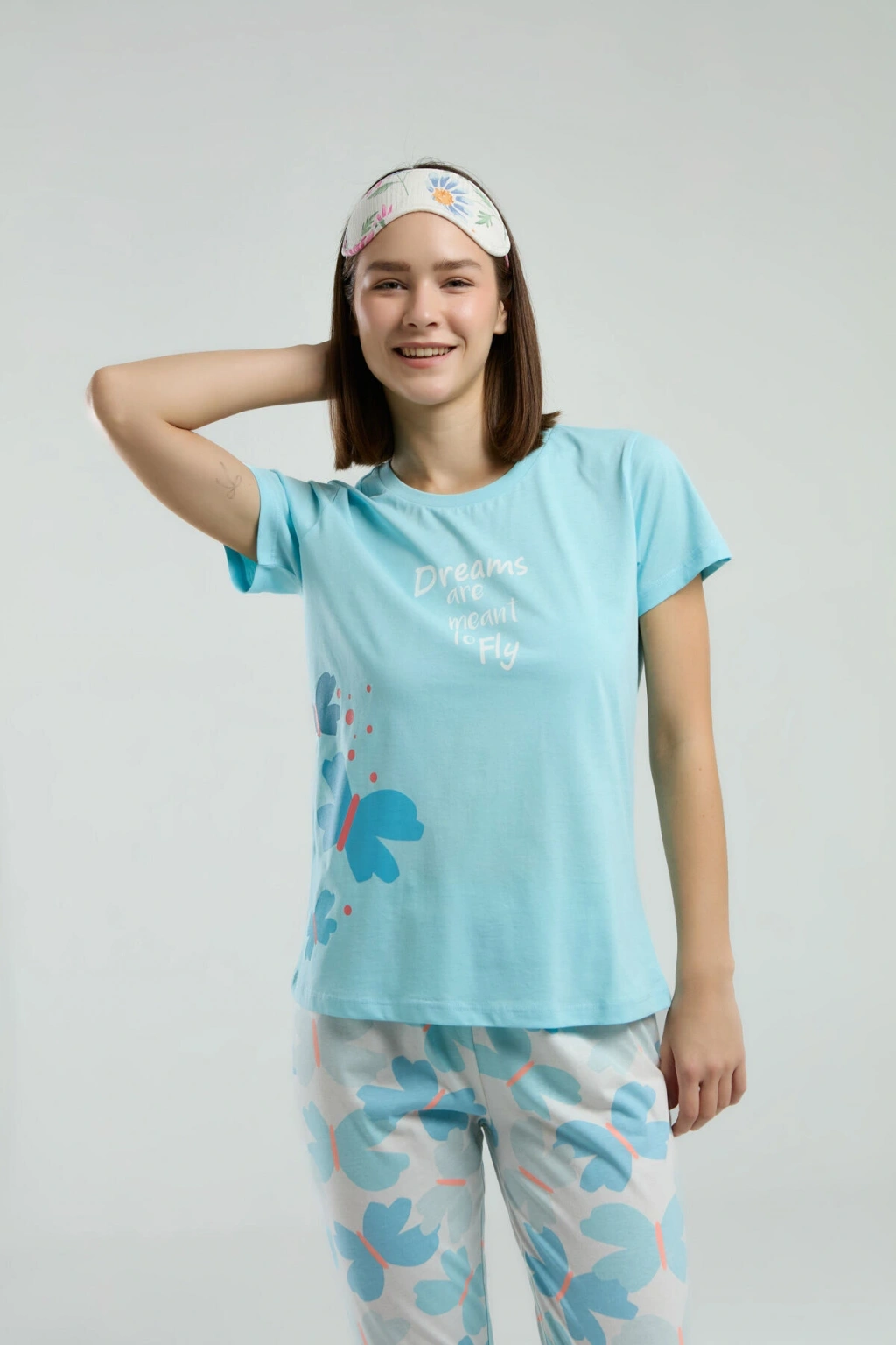 25109 Kadın V Yaka Kısa Kollu Bol Paçalı Pijama Takım