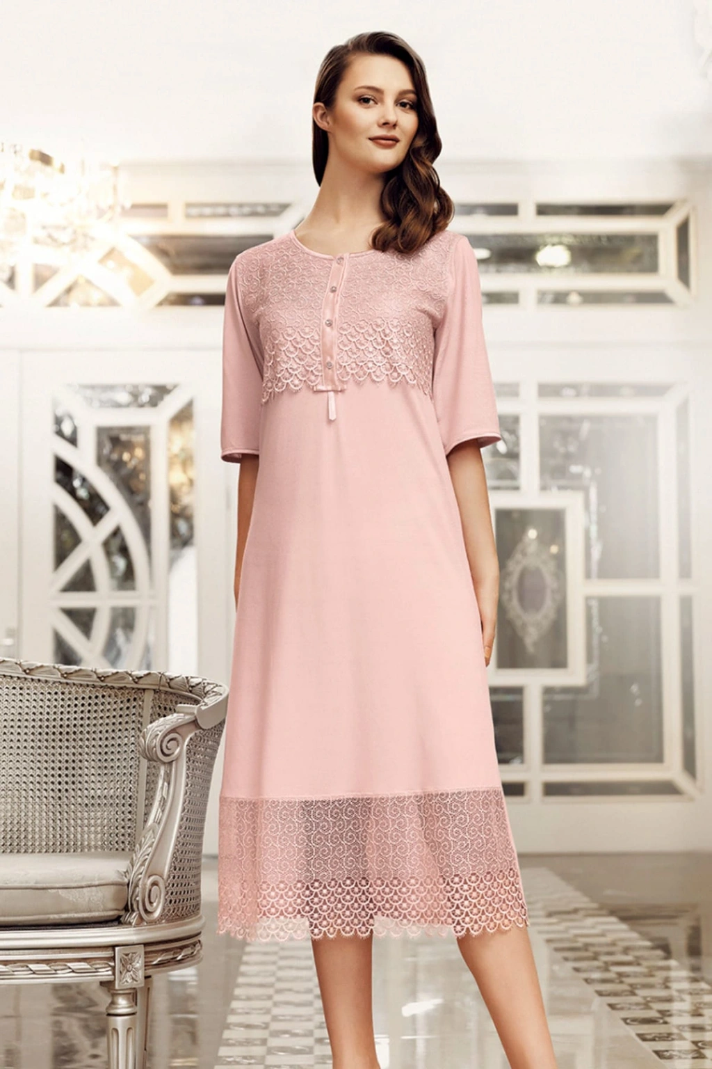 Kadın Pudra Dantelli Penye Gecelik Sabahlık Takımı 6406