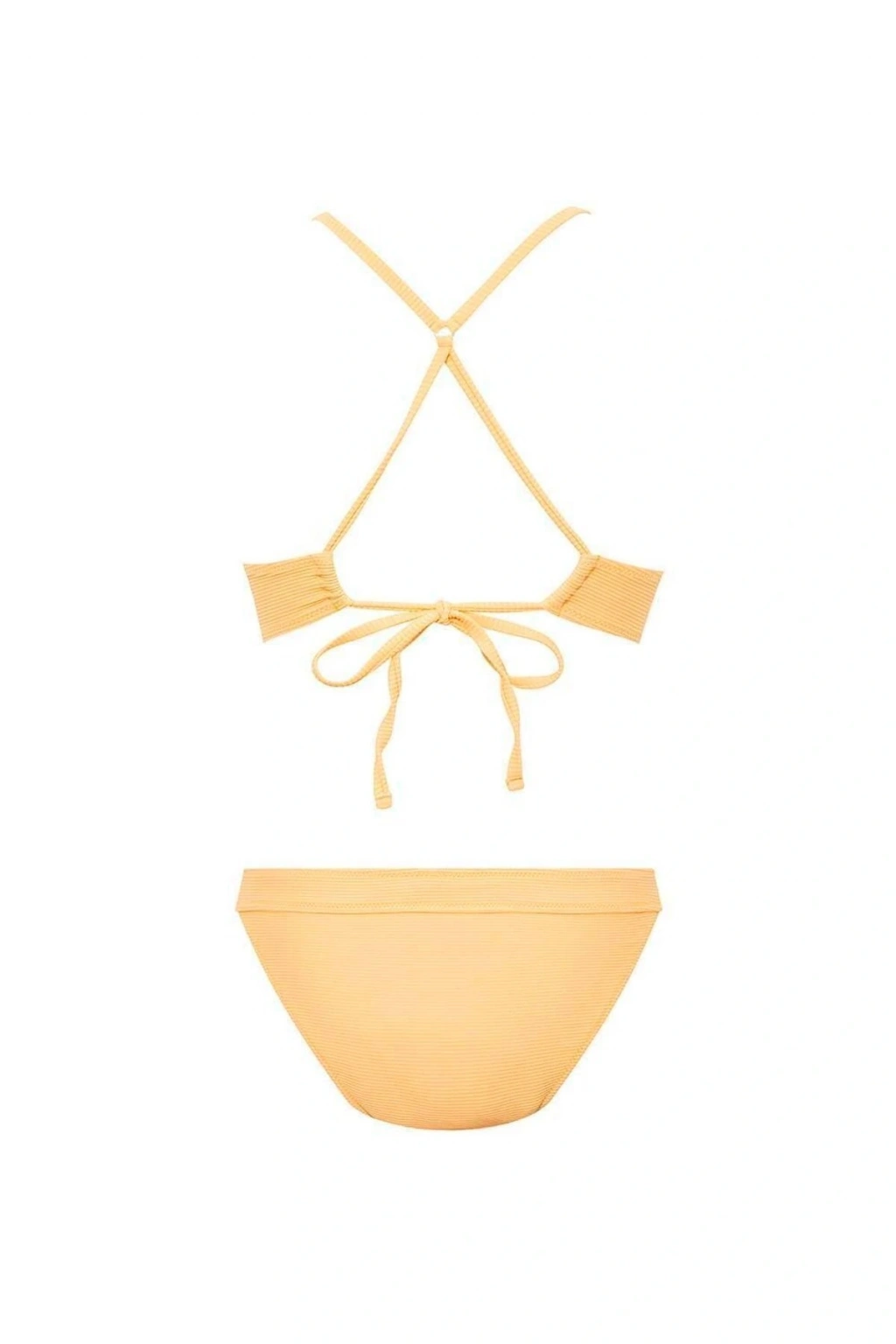 Plajda şıklığınızı konuşturacak sarı bikini takımı, yaz gardırobunuzun vazgeçilmezi olacak; Dokuma kumaş yapısı sayesinde uzun süreli kullanımlarda bile formunu koruyarak konforlu bir deneyim sunar; Kolay bakım imkanı sağlayan yıkama talimatları ile bikini takımınızın ilk günkü canlılığını uzun süre muhafaza etmesini sağlar; Plaj tekstil koleksiyonunun bir parçası olarak tasarlanan bu bikini takımı, plaj modasının en trend parçalarından biridir; Her yaş grubuna hitap eden geniş beden skalasıyla herkes için uygun bir seçenek sunar; Askılı tasarımı ile omuzları rahatça hareket ettirme özgürlüğü verirken, bronzlaşmayı da kolaylaştırır;