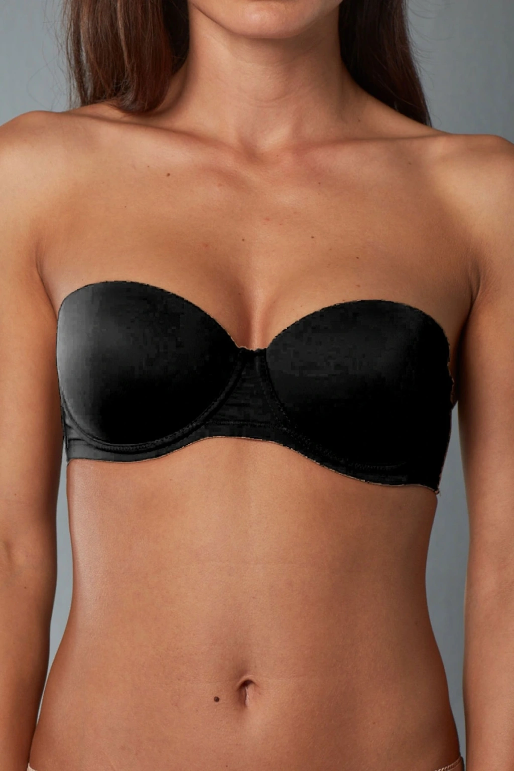 Kadın Siyah 11-382 Yari Pus-Up Balenli Strapless Sutyen