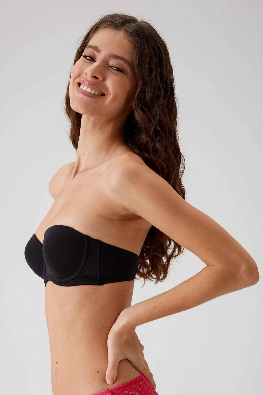 • Straplez • Destekli / Push Up • Micro Kumaş • Balenli • Çıkarılabilir ve Ayarlanabilir Askılı • Ürün içeriği: %90 Polyemide %10 Elastane.; • Paket içeriği: 1xSütyen, 1xÇıkarılabilir Sütyen Askısı • Kutulu Ürün • Pisa Kap 6025 sütyen modelinde kullanılan Pisa Kap, göğsü daha büyük ve dolgun gösteren, straplez, balenli ve destekli bir kap formudur.; Sütyenin, alt ve yan kısımlarında bulunan dolgu, göğsü sıkıştırarak yukarı doğru kaldırır.; Kaldırma özelliği nedeniyle, push up, destekli veya dolgulu sütyen olarak da bilinir.; Straplez sütyenler; askısız, düşük omuzlu, gece kıyafetleri veya gelinlik ile giyilebilmek için tasarlanmıştır.; Paket içerisindeki sütyen askısı ile hem straplez hem de askılı olarak kullanılabilir.; Elde 40 derece yıkama önerilir.; iç giyim modasına şık bir soluk getirirken doğru yıkama ve saklama koşulları ile uzun yıllar kullanım vadeder.;