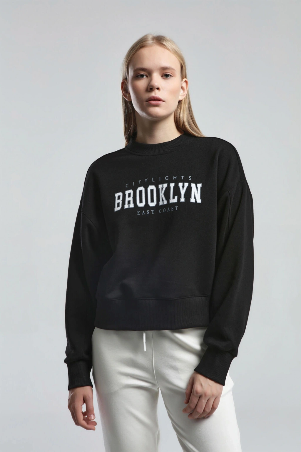 KADIN BASIC BİSİKLET YAKA UZUN KOL SWEATSHIRT Black