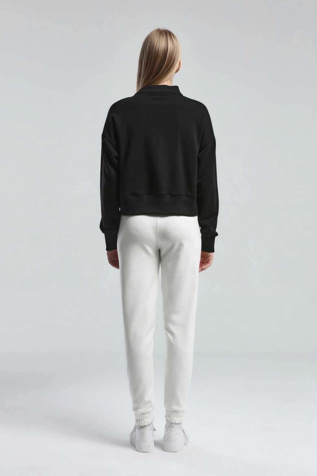 KADIN BASIC BİSİKLET YAKA UZUN KOL SWEATSHIRT Whıte