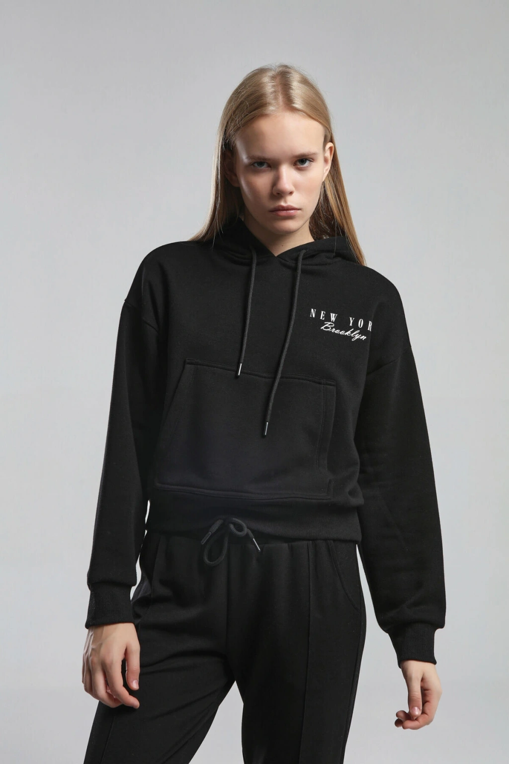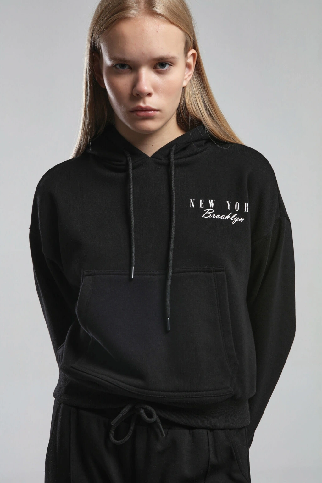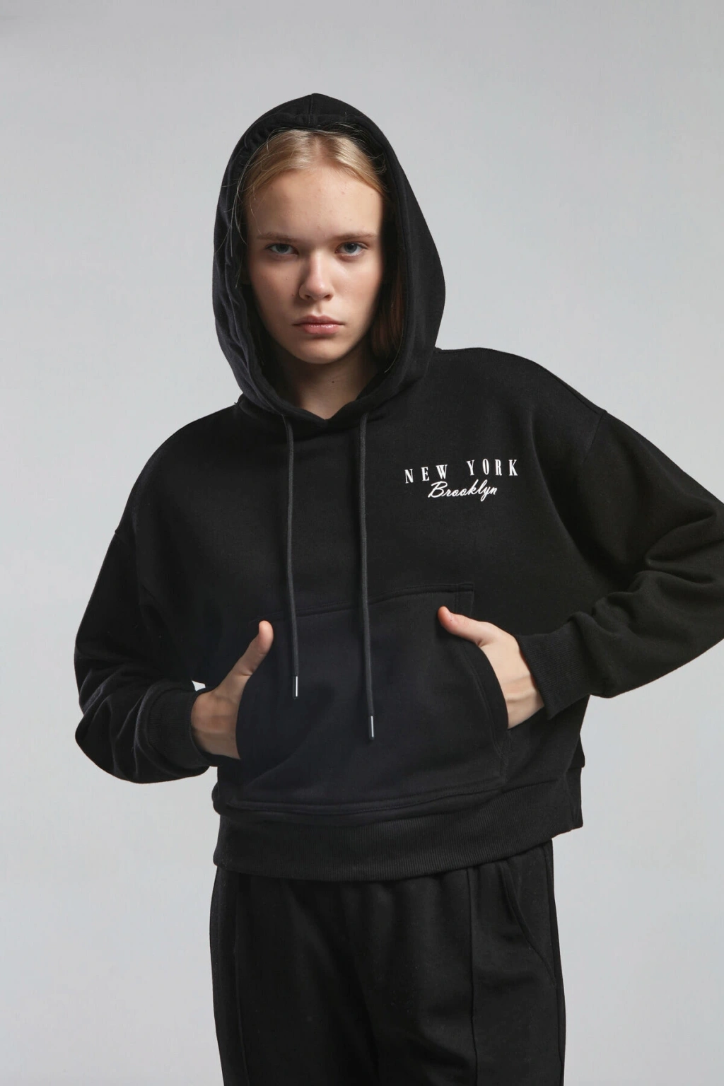 Kanguru Cepli Kapüşonlu Sweatshirt - Siyah