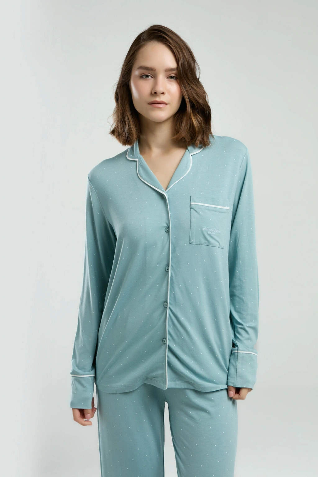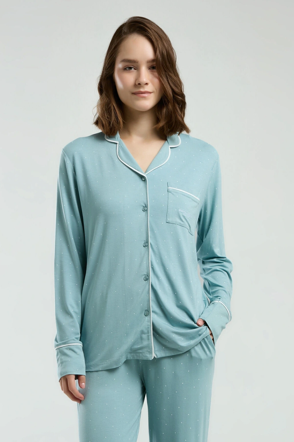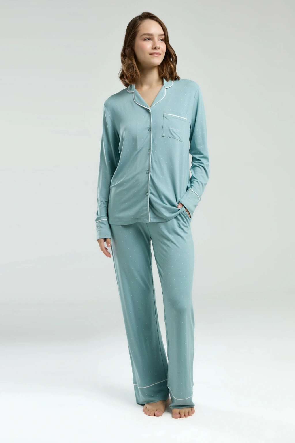 Kadın Yeşil Gömlek Pijama Takım