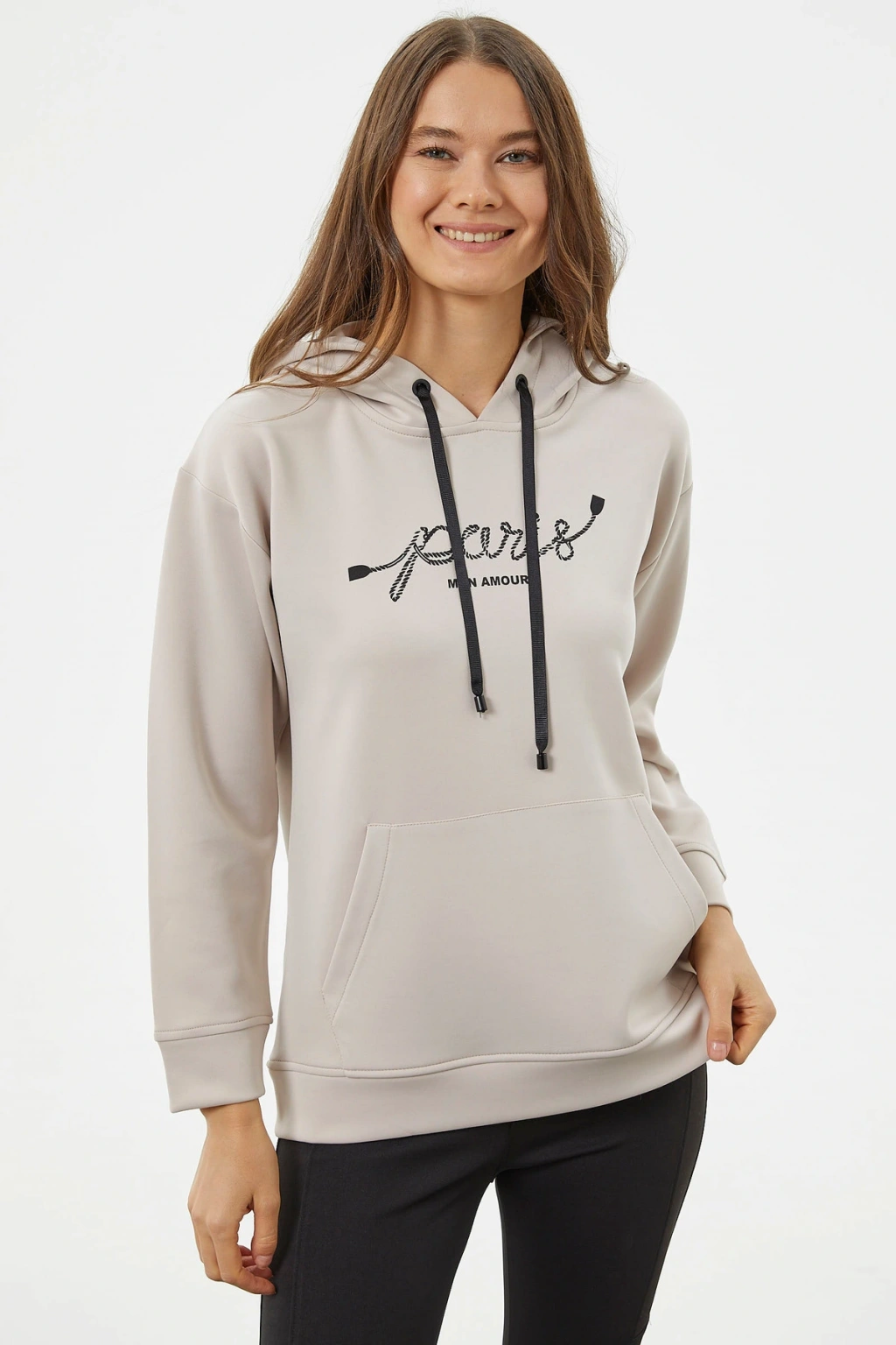 Rahat ve şık bir görünüm için regular kalıp ve uzun kol tasarımı; Kapüşonlu yaka tipi ile hem sıcak tutar hem de stil sahibi bir görünüm sunar; %50 polyester, %44 rayon ve %6 elastan karışımından oluşan materyal bileşeni, dayanıklılığı ve konforu bir arada sağlar; Baskılı deseni ile dikkat çekici ve modern bir tarz yaratır; Örme kumaş tipi, esneklik ve yumuşaklık sunarak hareket özgürlüğü sağlar; Sportswear koleksiyonuna ait bu sweatshirt, spor aktivitelerinizde veya günlük kullanımınızda idealdir; Sokak stili stilini yansıtan bu ürün, her ortamda rahatlıkla tercih edilebilir; Cep detayları sayesinde pratik kullanım imkanı sunarken, kanguru cepleri eşyalarınız için güvenli bir saklama alanı oluşturur; Tüm yaş gruplarına hitap eden tasarımıyla geniş bir kullanıcı kitlesine uygunluk gösterir; Standart boy uzunluğuyla farklı vücut tiplerine uyum sağlayarak konforlu bir kullanım sunar;