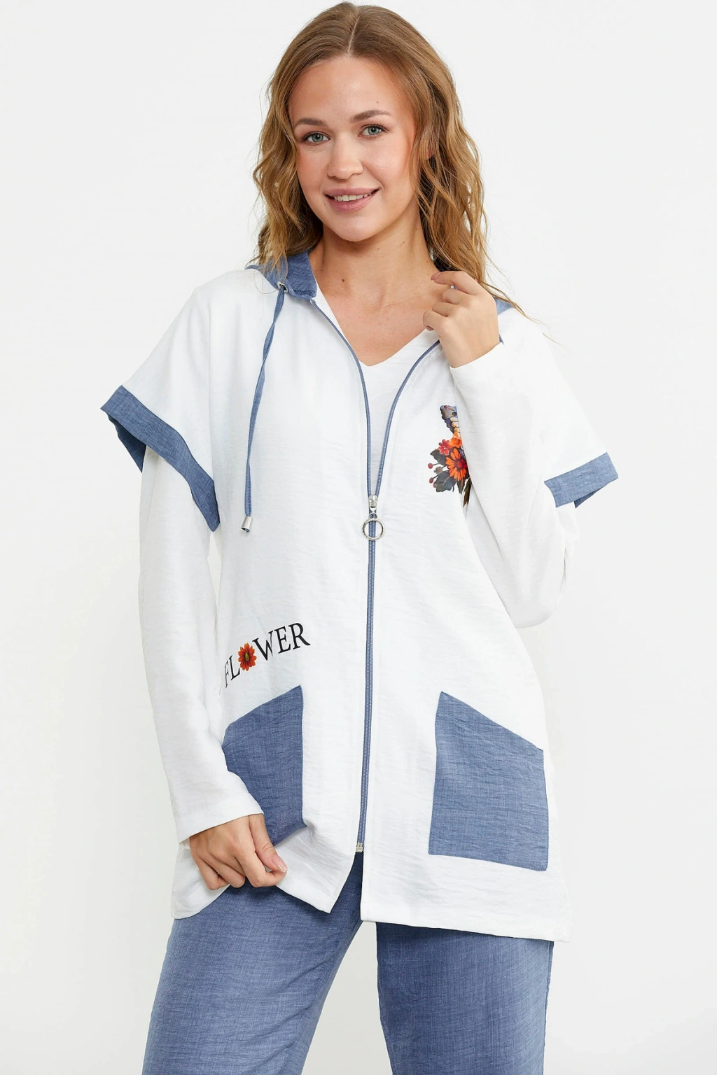 Kumaş İçeriği: %100 ViskozDesen: BaskılıYaka Tipi: Kapüşonlu YakaKol Tipi: Düşük KolluCep: CepliÜrün Boyu: 71 cm Kalıp Tipi: Rahat Kalıp