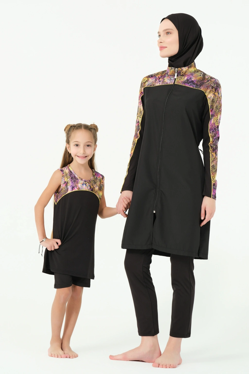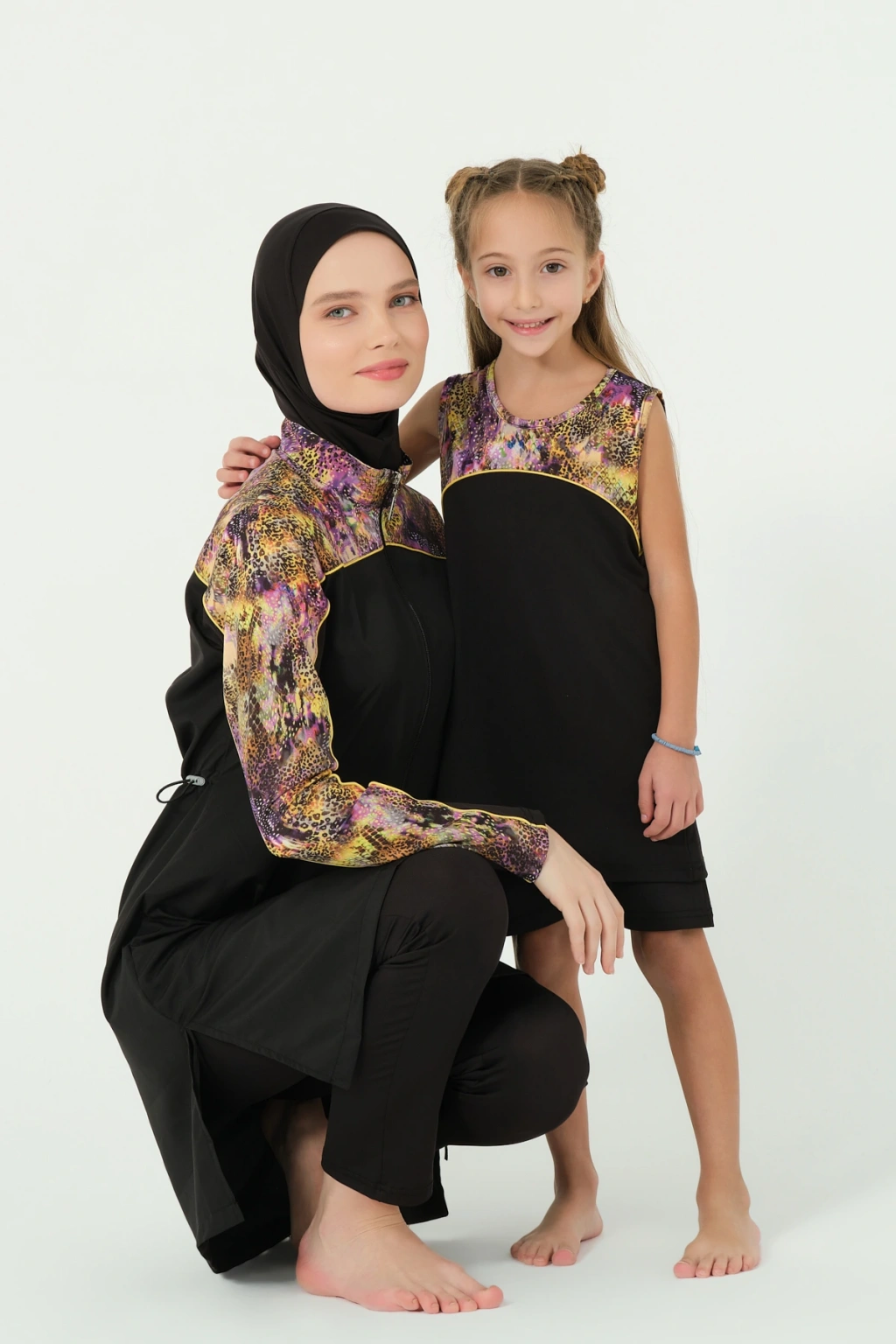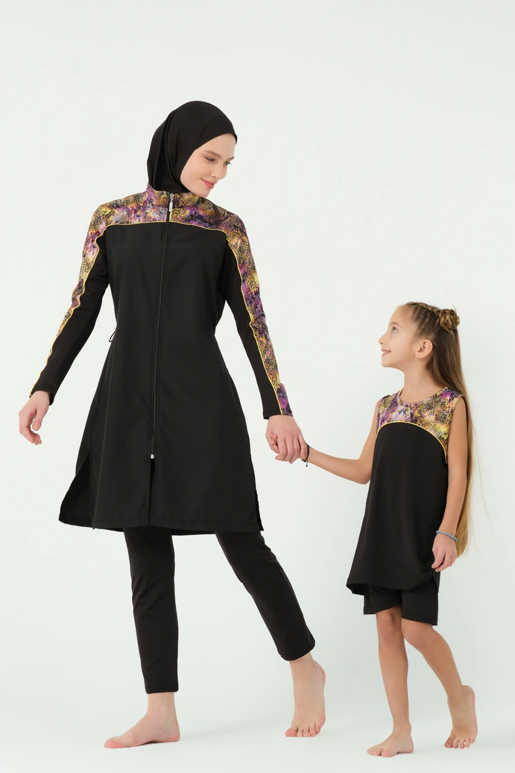 EN: The set consists of 3 pieces: Top, Leggings, and Bonnet. It provides quick-drying and easy swimming capability.