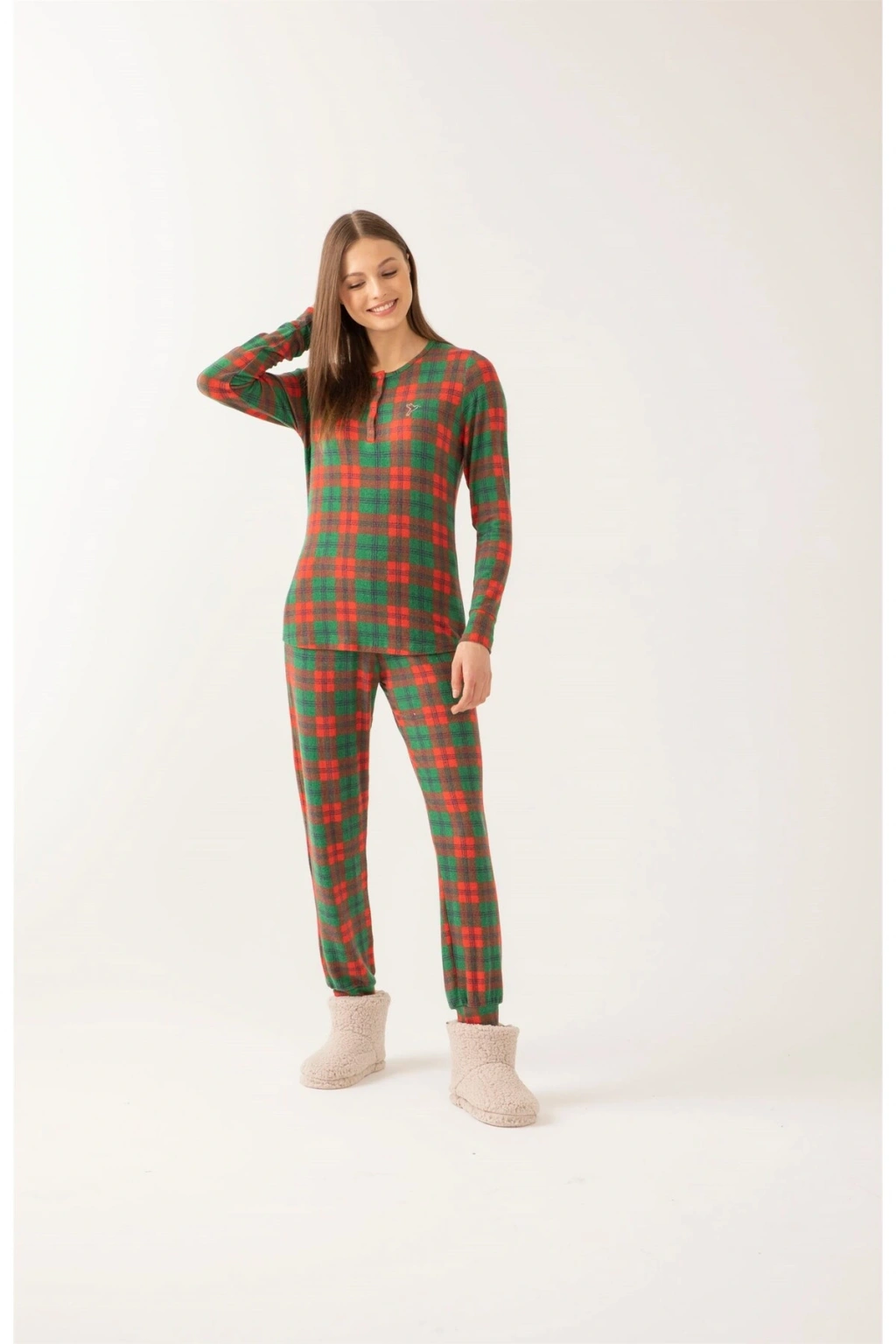 Rahat bir uyku deneyimi için ideal, normal bel kesim pijama takımı; Hareket özgürlüğü sağlayan relaxed kalıp ile konforlu bir kullanım sunar; %95 viskoz ve %5 lyc karışımı materyal bileşeni, yumuşak dokusuyla cildinize nazikçe dokunur; Canlı ve şık görünümüyle dikkat çeken desenli tasarım, ev giyiminize renk katar; Örme kumaş tipi sayesinde esneklik ve dayanıklılık bir arada sunulur, uzun süreli kullanım için uygundur;
