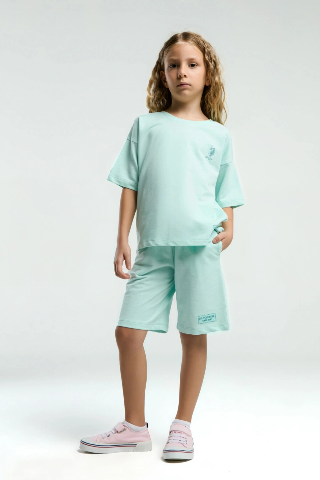 U.; S.; Polo Assn.; Kız Çocuk Mavi Bermuda Takım
