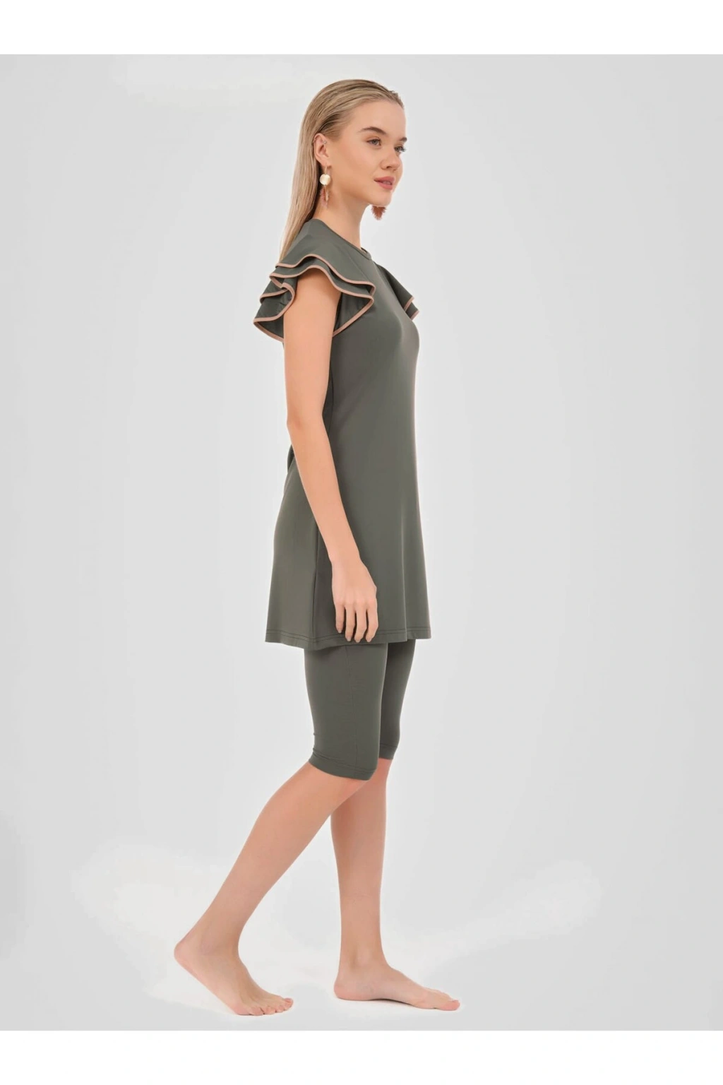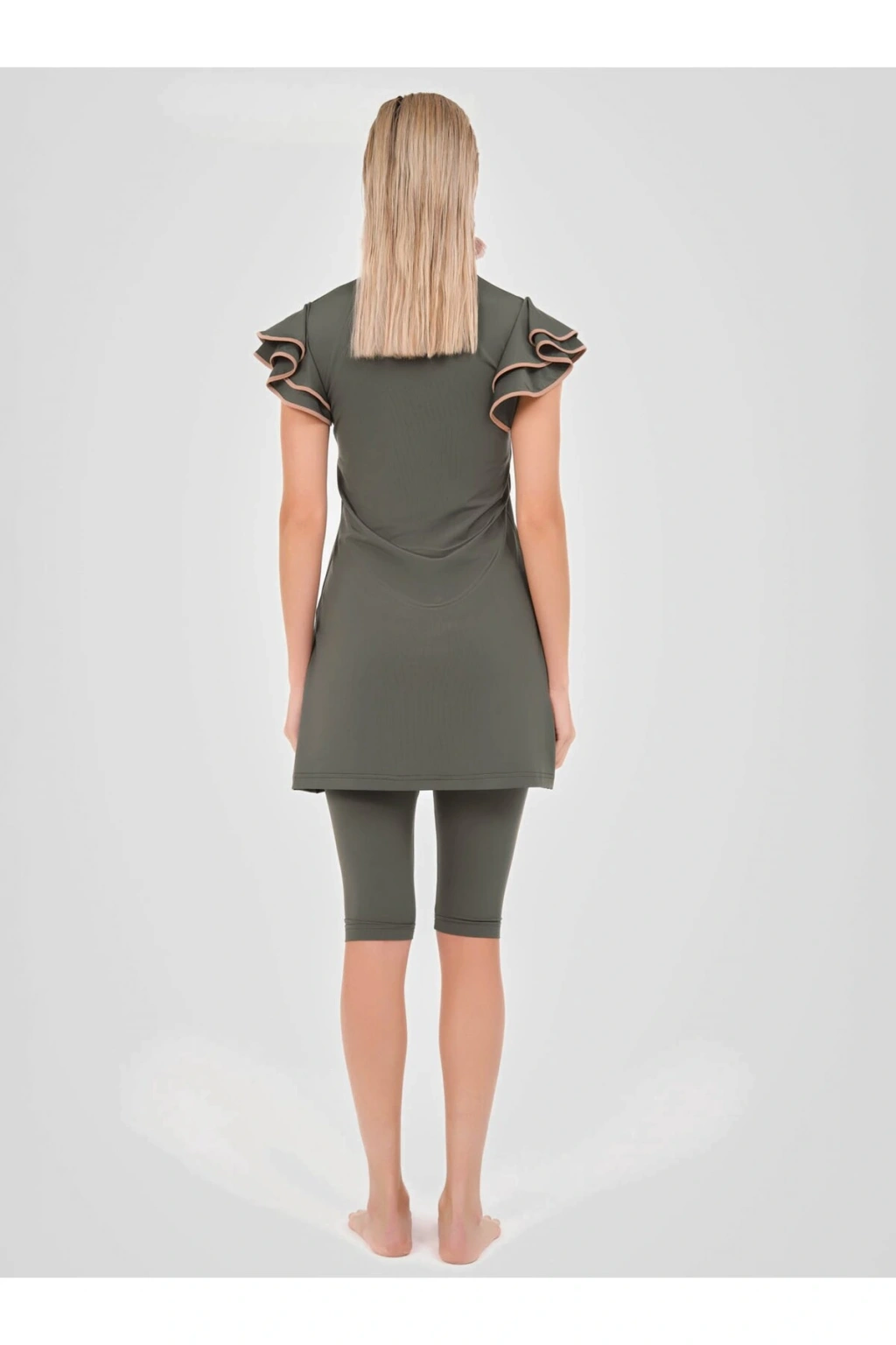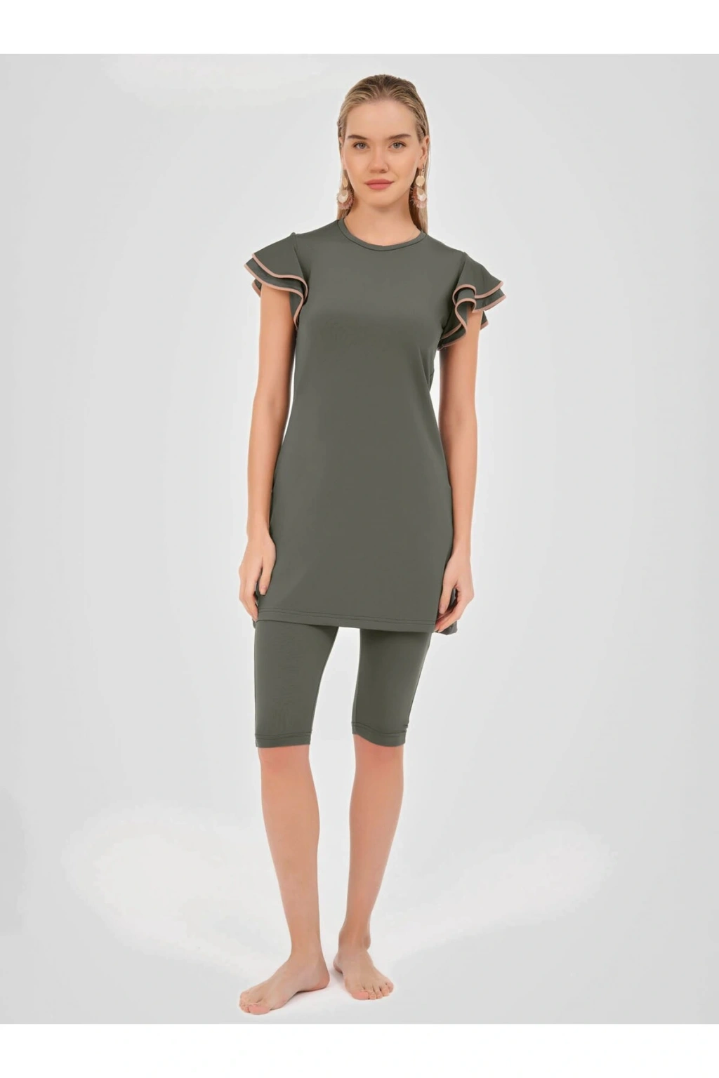 Kolu Volan Detaylı Yarım Kol Yarı Kapalı Mayo Zarif ve konforlu bu yarı kapalı mayo, suyun içinde mükemmel uyum ve hareket özgürlüğü sunan esnek likralı kumaş ile tasarlanmıştır. ; Canlı renkler ile her yaş ve bedene uygun bir görünüm sağlar. ; Tanım Su itici . ; Suyu iten apreli likra kumaş. ; Üst desenli. ; Volan detaylı kısa kol. ; Bisiklet yaka. ; Bone. ; Kısa tayt. ; Tek parça iç çamaşır Paket İçeriği Üst, Tayt, Bone, Tek parça iç çamaşırı olmak üzere 4 parçadan oluşmaktadır. ; Hızlı kuruma, kolay yüzme olanağı sağlar. ; Kumaş İçeriği %95 Poliester, %5 Elastan, Su itici apre uygulanmıştır.;