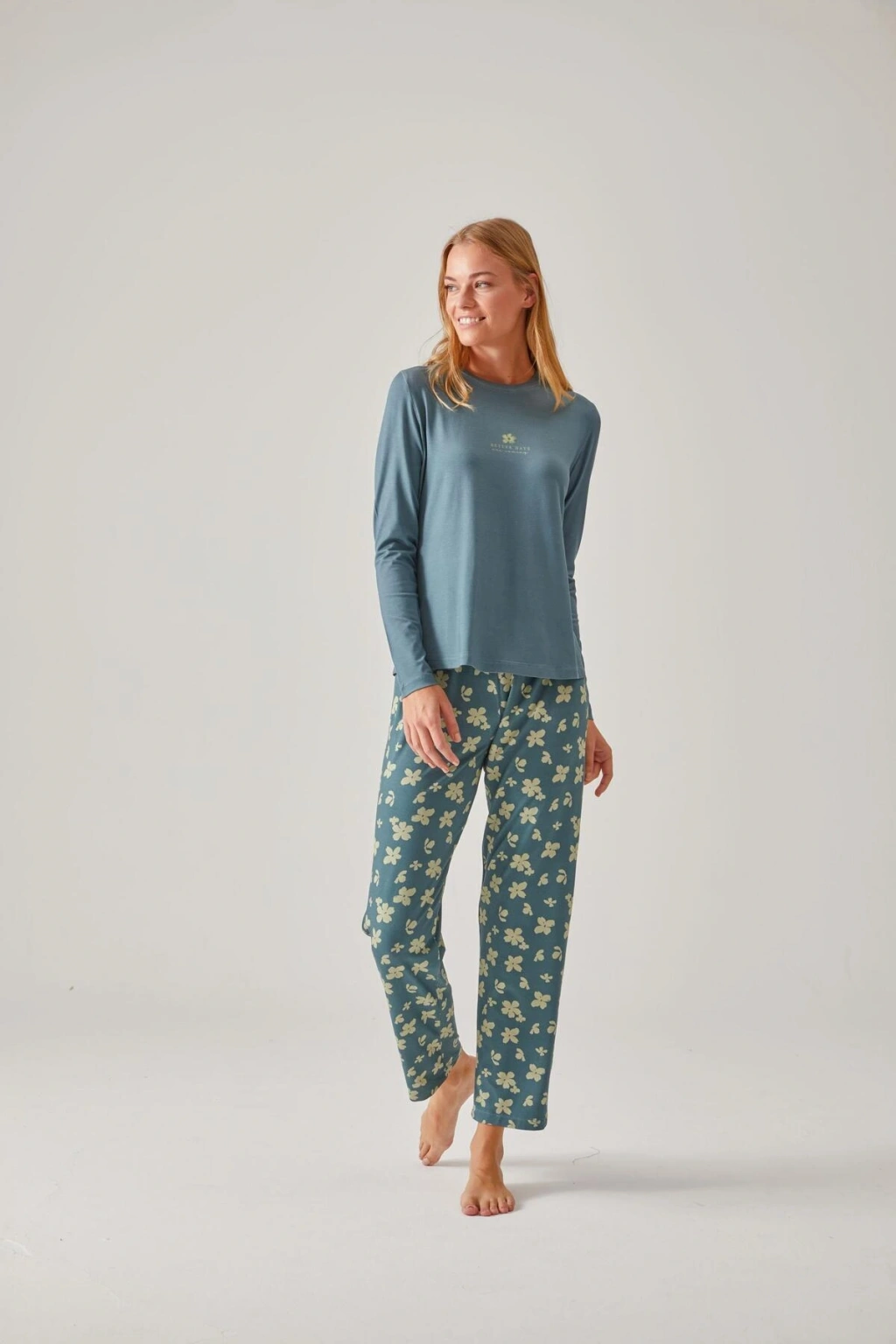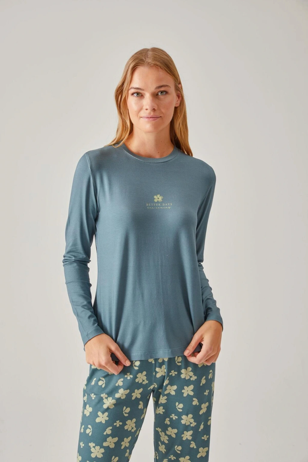 - Her yaş grubuna uygun tasarımıyla geniş bir kullanıcı kitlesine hitap eder; - Örme kumaş yapısı, esneklik ve dayanıklılığı bir arada sunarak hareket özgürlüğünüzü kısıtlamaz; - İki parçadan oluşan set, hem üst hem de alt parça olarak tam bir uyum sağlar ve şık bir görünüm kazandırır; - Canlı ve desenli tasarımıyla göz alıcı bir stil oluştururken, ev giyiminize renk katmayı başarır; - Viskon dokuma tipi, nefes alabilir özelliğiyle terlemeyi minimize eder ve rahat bir uyku ortamı sağlar; - Bisiklet yaka kesimi ile modern ve sade bir görünüm sunarken, rahatlığından ödün vermez; - Homewear koleksiyonunun parçası olarak evde geçirilen zamanları daha keyifli hale getirirken şıklığından ödün vermezsiniz.; - Uzun kol boyu sayesinde kollarınızın tamam;