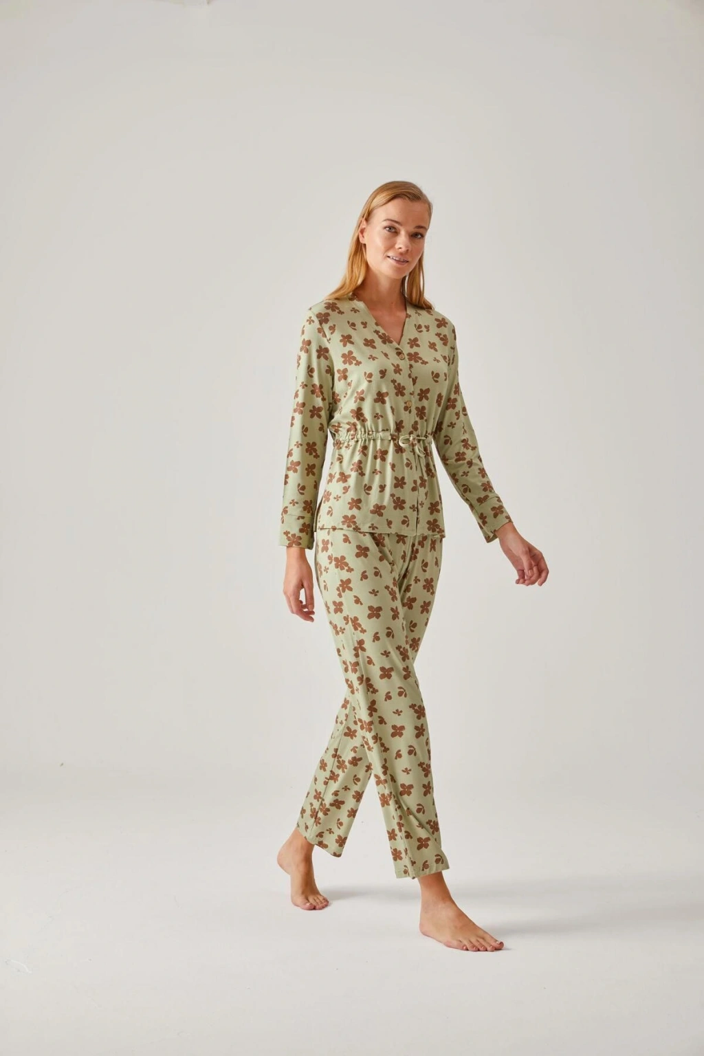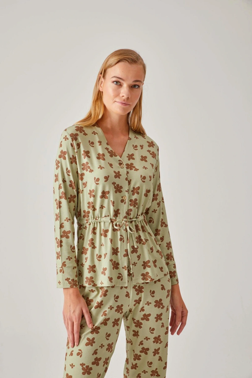 Kadın Yeşil Gömlek Pijama Takım