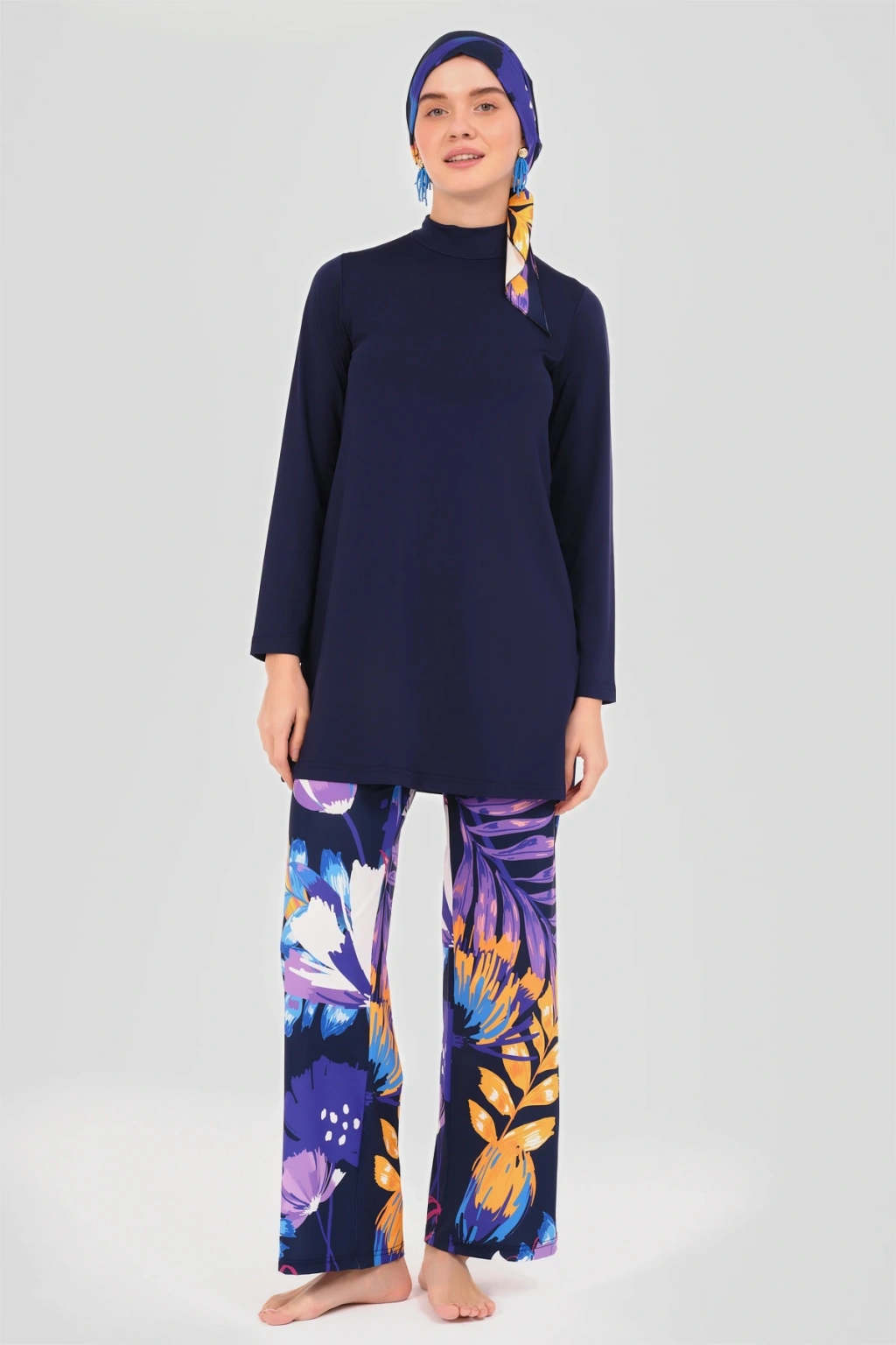 Üst, Pantolon, Üçgen bone, Bone, Tek parça iç çamaşırı olmak üzere 5 parçadan oluşmaktadır.; Hızlı kuruma, kolay yüzme olanağı sağlar.; Kumaş Bilgisi: %100 Polyester Resimdeki ürünün ölçüleri: Beden: S