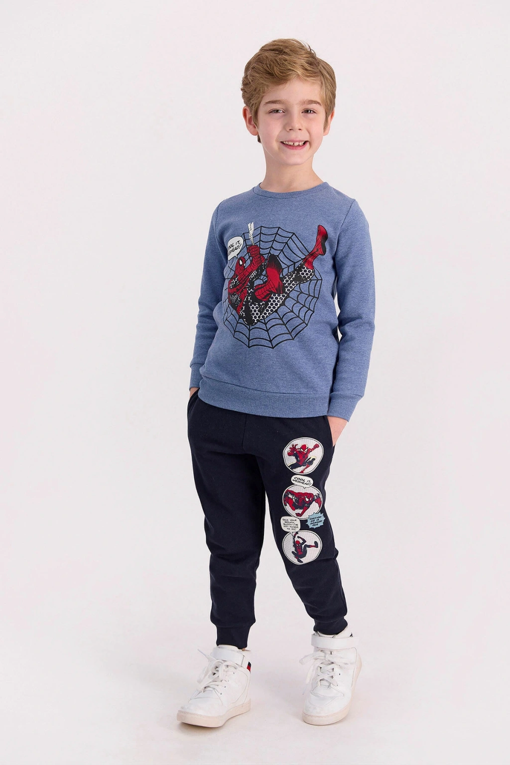 Spiderman Lisanslı Cool It Web Head Mavimelanj Erkek Çocuk Eşofman Takımı yapısı gereği gündelik hayatta rahatlıkla kullanılabilmektedir. ; İki ayrı parçadan oluşan eşofman takımı, Spiderman filmine özel baskılarla detaylandırılmıştır. ; Alt parçada üç ayrı Spiderman baskısı bulunmakta ve baskıların yanında sözler yer almaktadır. ; Bununla birlikte üst parça mavimelanj kumaş yapısına sahiptir ve mavi rengi seven erkek çocuklarına özel üretilmiştir. ; Kocaman bir Spiderman ağı içerisinde yer almakta ve bu görüntü, Spiderman hayranı erkek çocuklarına hitap etmektedir. ; Spiderman Lisanslı Cool It Web Head Mavimelanj Erkek Çocuk Eşofman Takımı kullanışlılığı ve işlevselliği ile dikkatleri üzerine çeken tasarım harikası bir üründür ve lisanslıdır. ; Kullanışlı yapısı ve alt parçada yer alan cep detaylarıyla gündelik hayatta konforlu bir kullanım sunmaktadır. ; Stok Kodu : D4620-C-V2 Marka : Spiderman Renk : Koyu Mavi Melan Kumaş İçerik : %100 Pamuk Kumaş Tipi : Üç İplik FİYATLAR SEÇİLEN BEDENLERE GÖRE FARKLILIK GÖSTEREBİLİR. ; ConnectProf © tarafından yayınlanmıştır.;