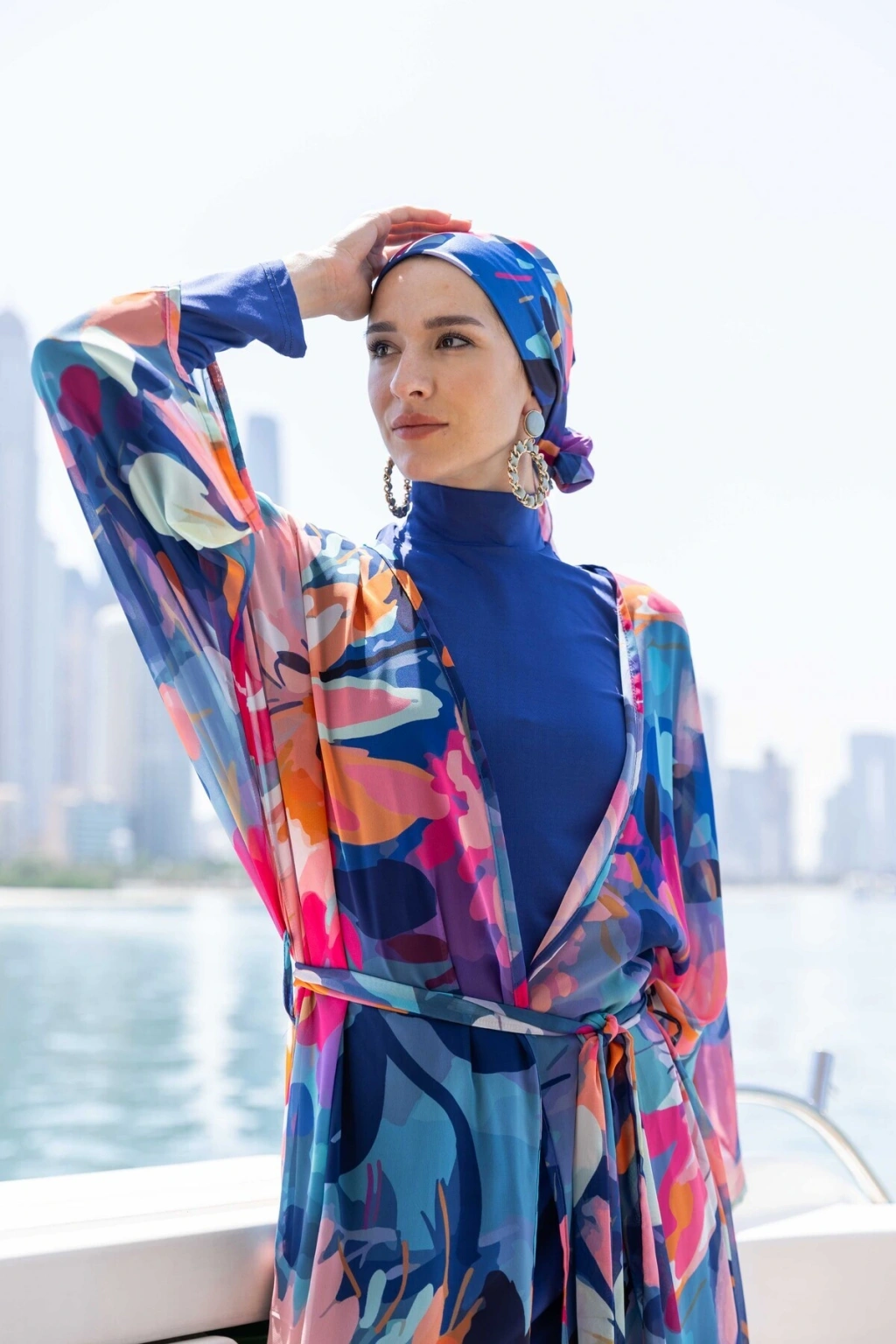 Su Desenli Pareolu 6 Parça Tesettür Mayo DLX-24605