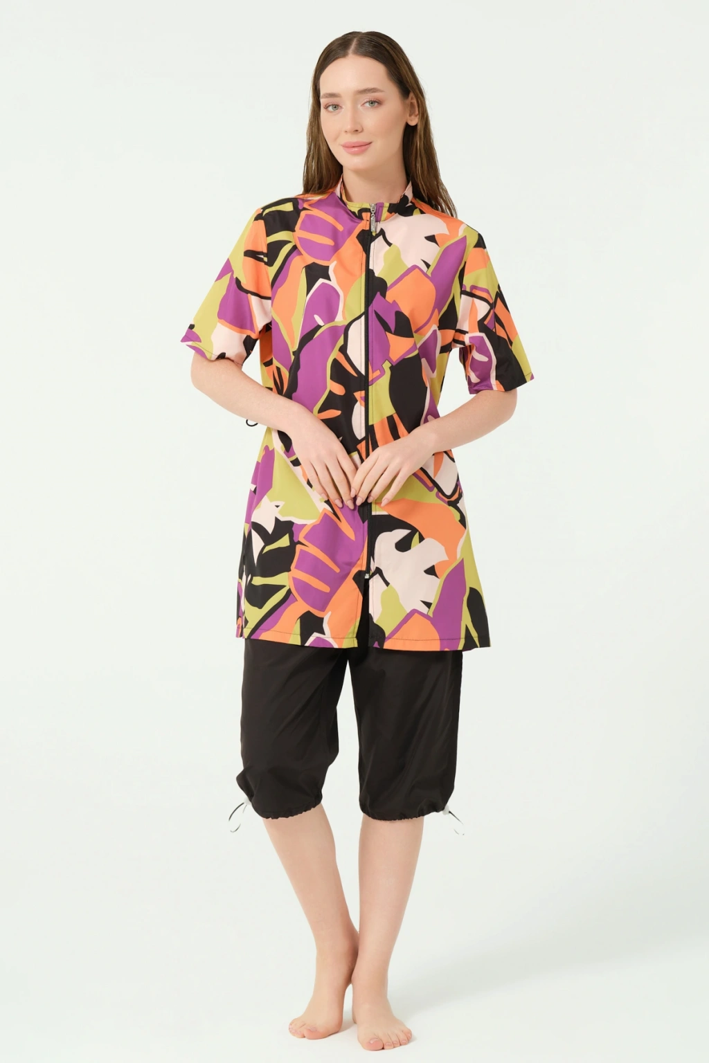 Marisa Desenli Yarım Kol Yarı Kapalı Mayo