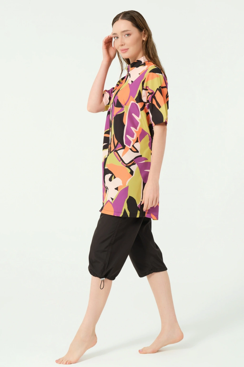 Yakamoz Desenli Tesettür Mayo DLX-24607