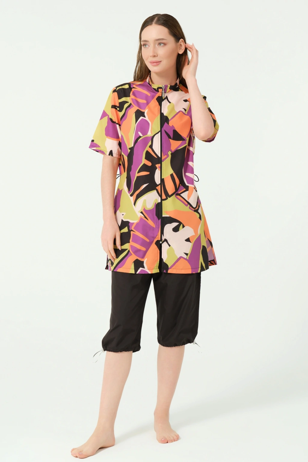 Spor Parmak Geçirmeli Uzun Tesettür Mayo DLX-24505