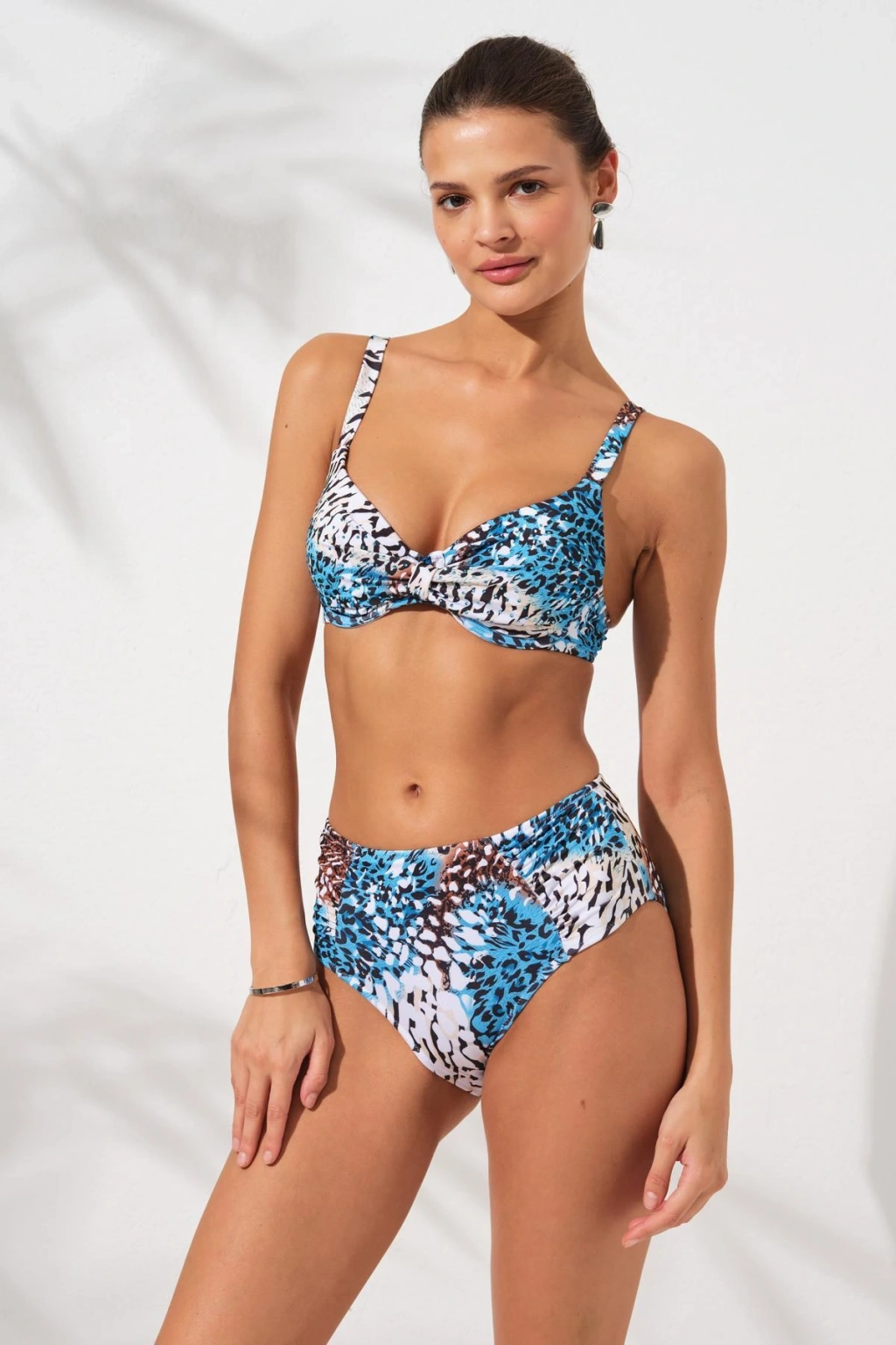 Takım Olarak Satılmaktadır.; Bikini takımının üstü balenlidir.; İçi boş kaptır bu sayede balen teli göğüsünüzü alttan desteklerken sabit kap formu göğsünüzü içine alarak toparlar ve daha düzgün bir görünüm elde etmenizi sağlar.; Bikini üstünün sırtı metal tokalıdır.; Omuz askıları sabit omuz askılıdır omuz askıları ayar halkalıdır.; Omuzunuza göre ayarlayarak kullanabilirsiniz.; Yüksek bel drape detaylı bikini altı toparlayıcı kalıptır.; Popo açıklığı normal kesimdir.; Bikini takımı astarlıdır.; Ara bedene sahipseniz bir beden büyük tercih edebilirsiniz.; Beden tercihi yaparken bikini üstüne göre tercih yapmanızı öneririz.; Manken Üzerindeki Numune Beden 36 Bedendir.; Manken Ölçüleri: Boy:176 Kilo:52 Göğüs: 86 Bel:58 Basen:89.; YIKAMA ve KULLANIM TALİMATI: Her kullanımdan sonra beyaz sabun ile soğuk suda elde durulayınız. Gölgede kurutunuz.; Ağartıcı ve deterjan kullanmayınız.; Makinede yıkanmamalıdır, ütülenmemelidir.; Klor ve bronzlaştırıcı yağlar bikini kumaşına zarar vermektedir.; Kullanım sonrasında bikininizden arındığına emin olmalısınız.; Kumaş: %85 Polyester %15 Elastane içermektedir.; Tüm kumaşlarda olduğu gibi bikini kumaşında da sürtünme sonucu tüylenme oluşabilir.; Ürününüzü pürüzlü yüzeylerden uzak tutunuz.;