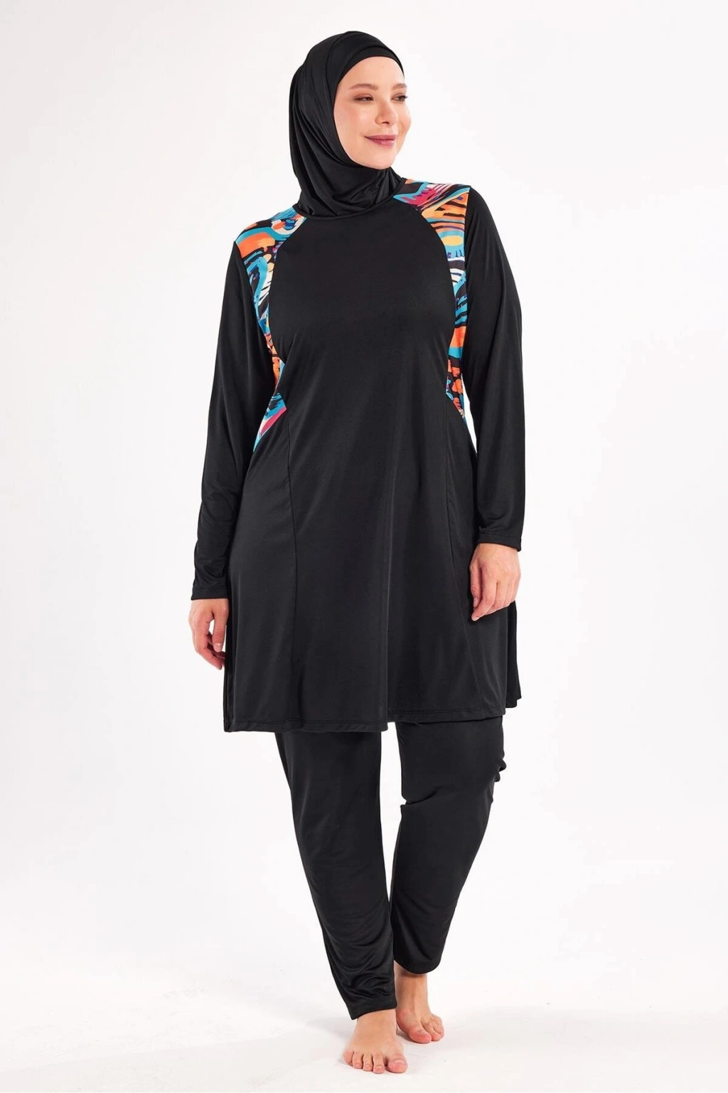 Milan uzun kollu tesettür mayo, sade ve şık detaylarıyla öne çıkan bir seçenek sunar. İnterlok kumaş yapısı sayesinde esnek ve dayanıklı bir kullanım sunarak hareket özgürlüğü sağlar. Büyük beden kullanıcılar için özel olarak tasarlanmış bu mayo, konforu ve estetiği bir arada sunar.