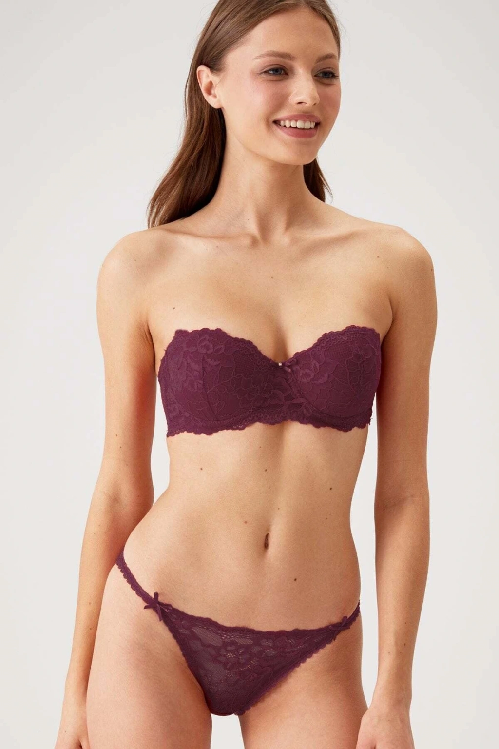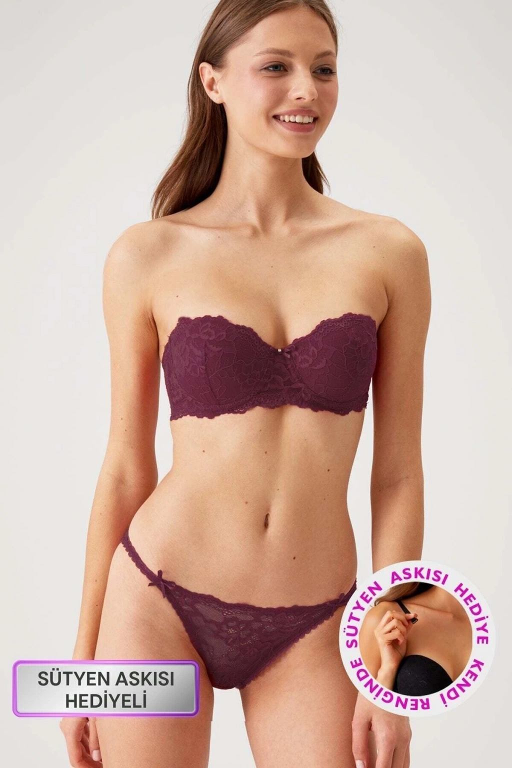 • Straplez • Destekli / Push Up • Dantelli • Balenli • Çıkarılabilir ve Ayarlanabilir Askılı • Ürün içeriği: %90 Polyemide %10 Elastane. • Paket içeriği: 1xSütyen, 1xKülot, 1xÇıkarılabilir Sütyen Askısı • Kutulu Ürün • Pisa Kap Pierre Cardin 4563 sütyen takım modelinde kullanılan Pisa Kap, göğsü daha büyük ve dolgun gösteren, straplez, balenli ve destekli bir kap formudur. Sütyenin, alt ve yan kısımlarında bulunan dolgu, göğsü sıkıştırarak yukarı doğru kaldırır. Kaldırma özelliği nedeniyle, push up, destekli veya dolgulu sütyen olarak da bilinir. Straplez sütyenler; askısız, düşük omuzlu, gece kıyafetleri veya gelinlik ile giyilebilmek için tasarlanmıştır. Paket içerisindeki sütyen askısı ile hem straplez hem de askılı olarak kullanılabilir. Hem özel hem günlük kullanımda ideal olan sütyeni Pierre Cardin tecrübesi ve güvencesi ile hemen sepetinize ekleyip konforu şıklıkla birlikte yakalayın. Elde 30 derece yıkama önerilir. Pierre Cardin iç giyim modasına şık bir soluk getirirken doğru yıkama ve saklama koşulları ile uzun yıllar kullanım vadeder.