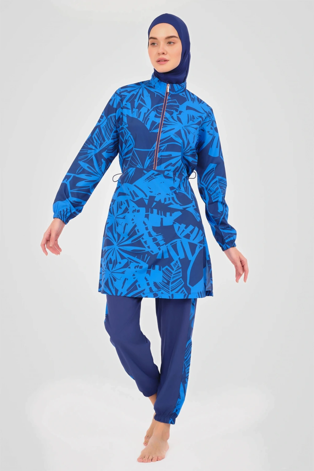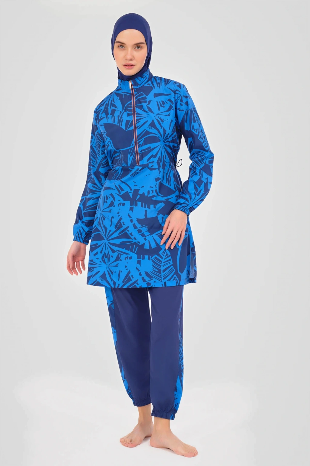 Neon Biye Detaylı Spor Tesettür Mayo Neon biye detaylarıyla modern ve çarpıcı bir görünüm sunan bu tesettür mayo, plaj modasına yeni bir soluk getiriyor. ; Canlı detaylar ve kaliteli kumaşı ile hem rahatlık hem de stil vaat eden bu tasarım, yaz günlerinizi aydınlatacak. ; Tanım Su itici . ; Suyu iten apreli paraşüt kumaş. ; Üst desenli. ; Ön yarı fermuarlı dik yaka. ; Uzun kollu. ; Yanları desenli pantolon. ; Likra eşarp ve bone. ; Tek parça iç çamaşır. ; Paket İçeriği Üst, Pantolon, Eşarp, Bone, Tek parça iç çamaşırı olmak üzere 5 parçadan oluşmaktadır. ; Hızlı kuruma, kolay yüzme olanağı sağlar. ; Kumaş İçeriği Ana Kumaş : %100 Poliester, Su itici paraşüt kumaş . ; Yardımcı Kumaş : %95 Poliester, %5 Elastan, Su itici apre uygulanmıştır.;