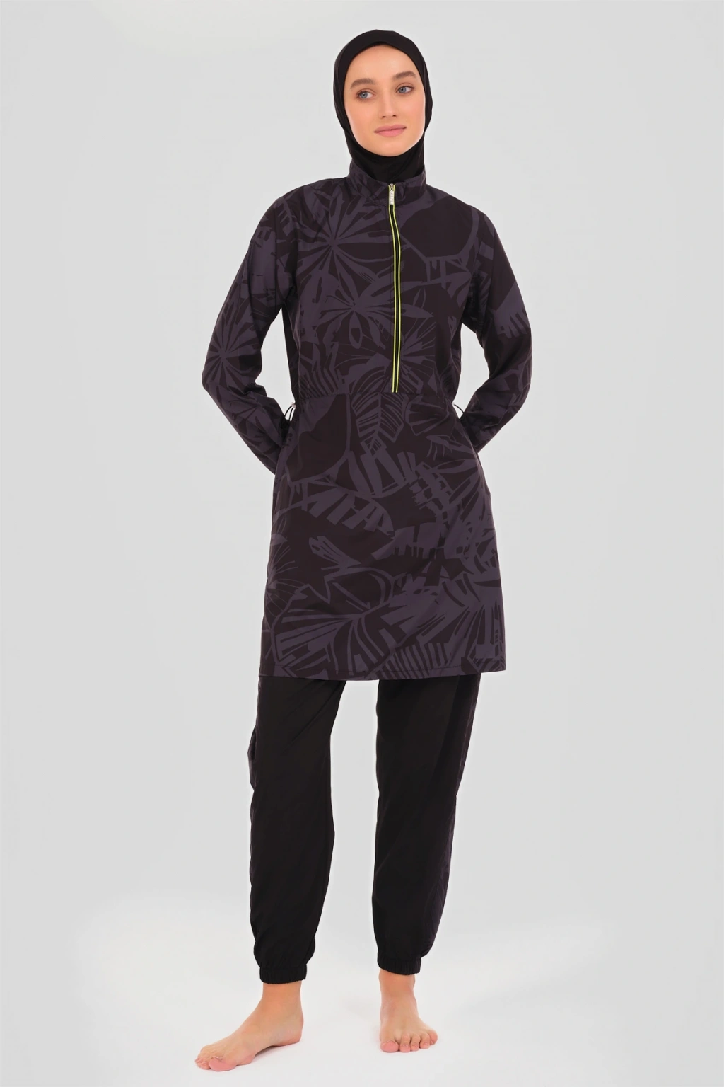 Neon Biye Detaylı Spor Tesettür Mayo Neon biye detaylarıyla modern ve çarpıcı bir görünüm sunan bu tesettür mayo, plaj modasına yeni bir soluk getiriyor. ; Canlı detaylar ve kaliteli kumaşı ile hem rahatlık hem de stil vaat eden bu tasarım, yaz günlerinizi aydınlatacak. ; Tanım Su itici . ; Suyu iten apreli paraşüt kumaş. ; Üst desenli. ; Ön yarı fermuarlı dik yaka. ; Uzun kollu. ; Yanları desenli pantolon. ; Likra eşarp ve bone. ; Tek parça iç çamaşır. ; Paket İçeriği Üst, Pantolon, Eşarp, Bone, Tek parça iç çamaşırı olmak üzere 5 parçadan oluşmaktadır. ; Hızlı kuruma, kolay yüzme olanağı sağlar. ; Kumaş İçeriği Ana Kumaş : %100 Poliester, Su itici paraşüt kumaş . ; Yardımcı Kumaş : %95 Poliester, %5 Elastan, Su itici apre uygulanmıştır.;