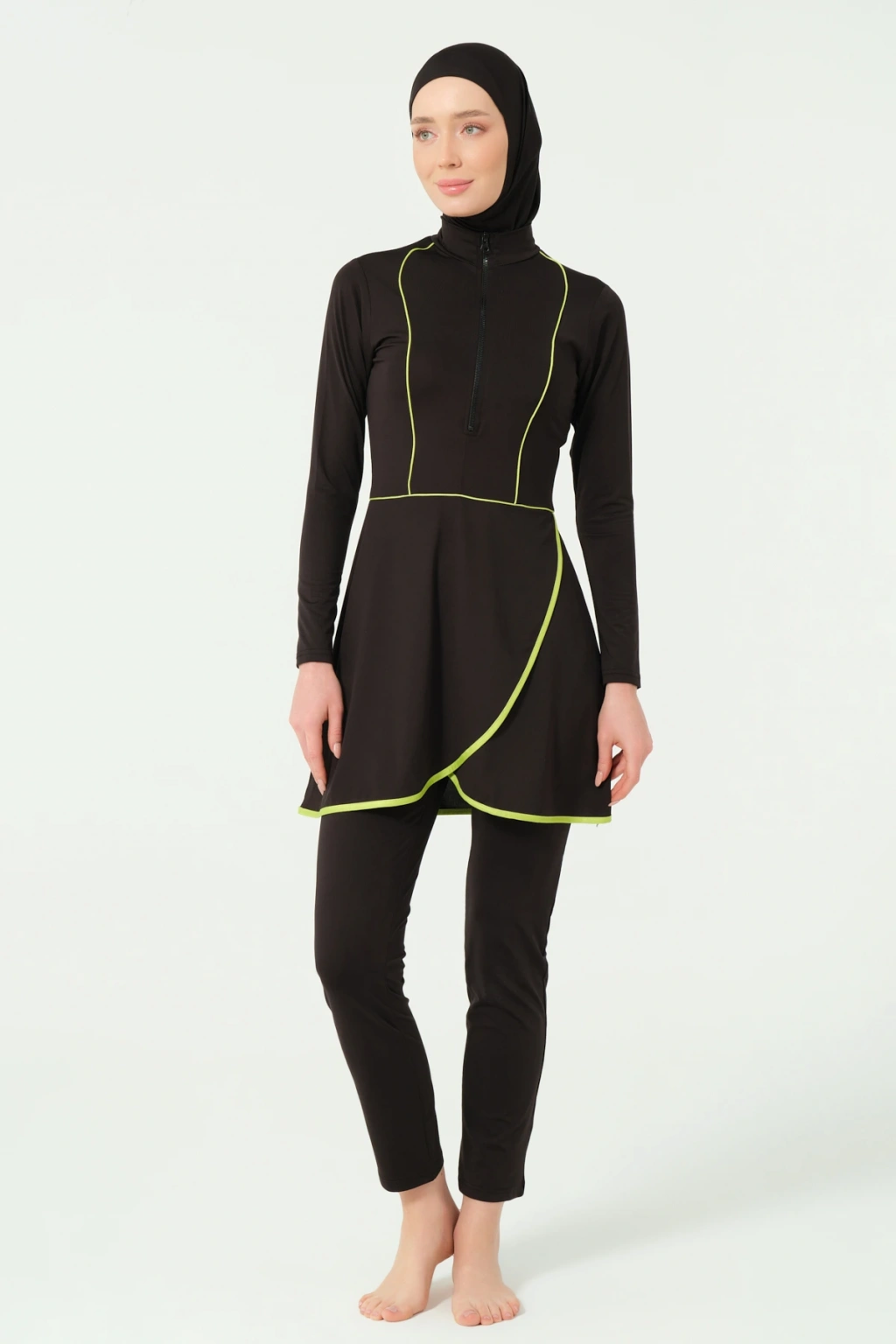Spor Parmak Geçirmeli Uzun Tesettür Mayo DLX-24505