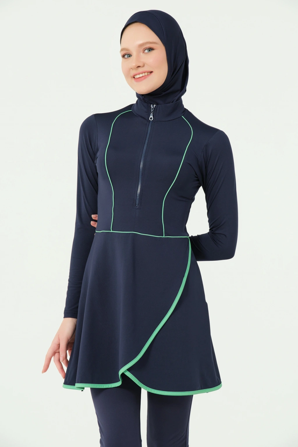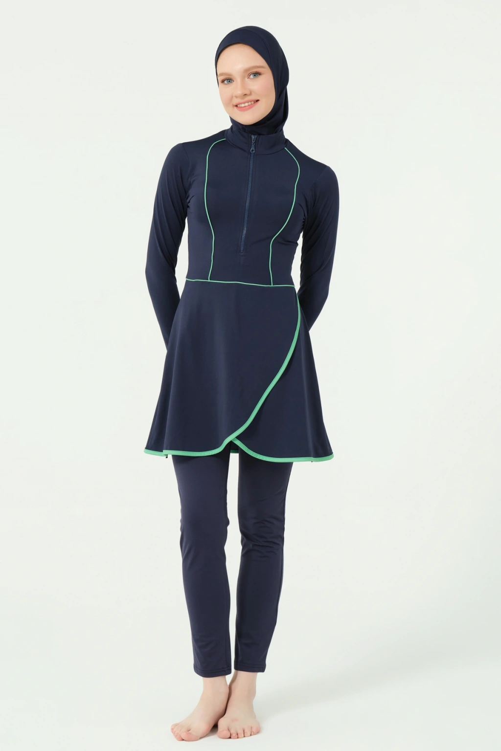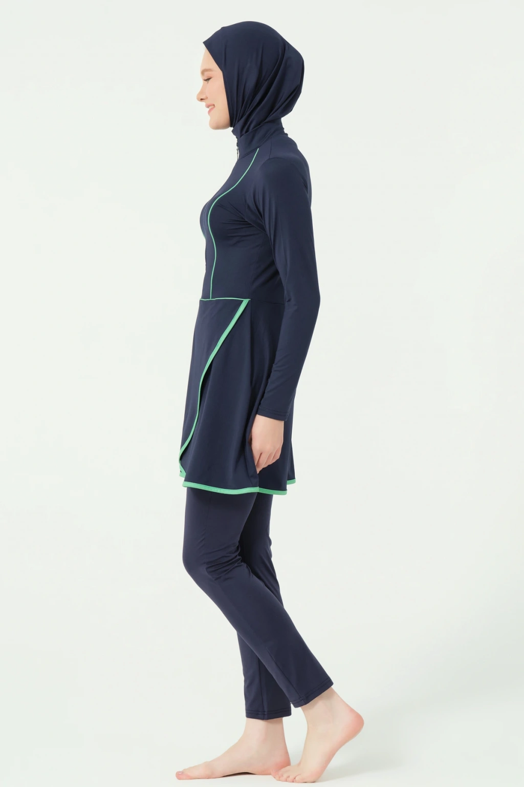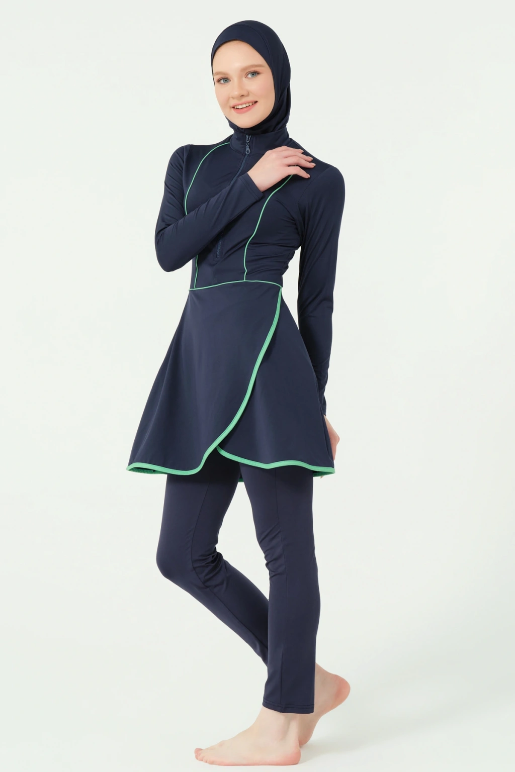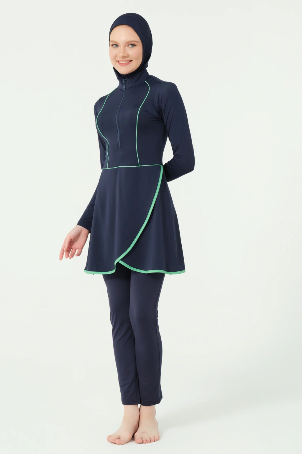 Lian Kıl Biye Detaylı Paraşüt Kumaş Tam Kapalı Tesettür Mayo Lacivert DLX-25289
