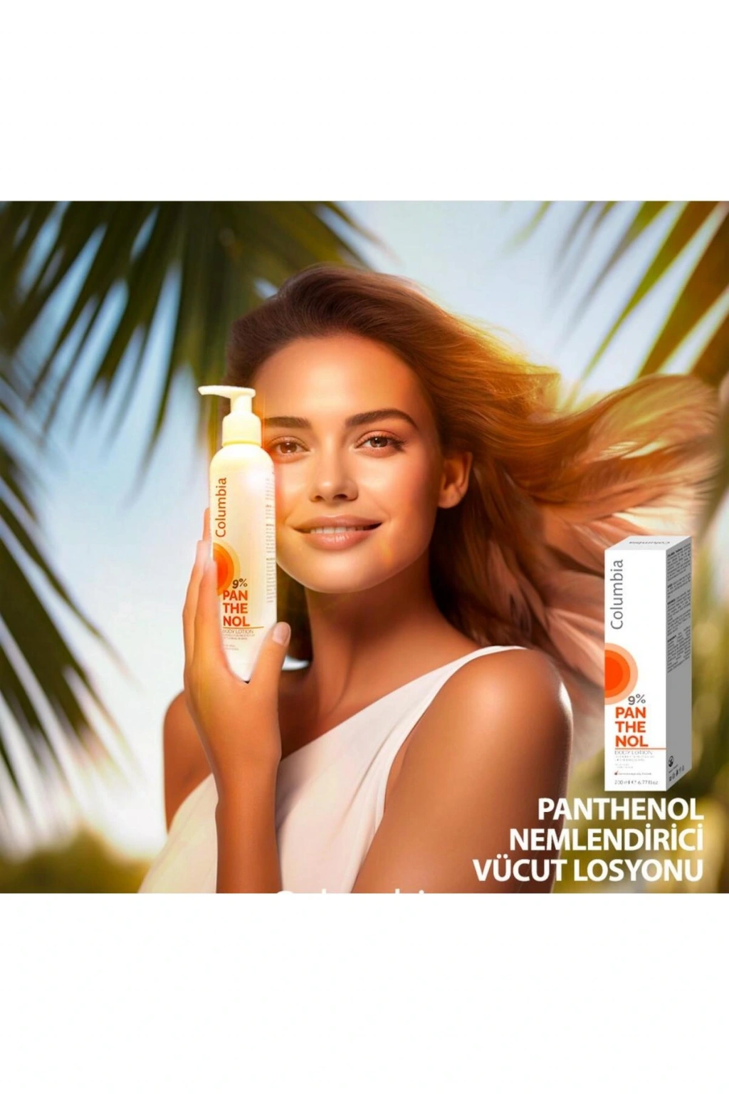 COLUMBIA Panthenol, güneşten ve dış etkenlerden etkilenmiş cildinizi içeriğindeki yüksek oranda panthenol sayesinde cildinizi nemlendirir ve besler; Cilt tarafından homojen ve hızlı bir emilim gösterir; Cildinizin nem oranı dengesini korumaya yardımcı olur; KULLANIM ŞEKLİ:Her cilt tipine uygundur; Temiz ve kuru cilde ihtiyaç duyulan sıklıkta, cilt tarafından tam emilim sağlanıncaya kadar hafif masajla uygulayınız; UYARILAR:Haricen kullanılır; Çocukların ulaşamayacağı yerde ve oda sıcaklığında muhafaza ediniz; Gözler ve hassas bölgelerden uzak tutunuz; Gözle teması halinde bol su ile yıkayınız; Kullanmadan önce bileğinizin iç kısmında test ediniz, 10; 15 dk; bekledikten sonra herhangi bir alerjik reaksiyon olmaması halinde yüzünüze uygulayınız; ÇİNDEKİLER:Aqua, Paraffinium Liquidum, Cetearyl alcohol, Panthenol, Propylene Glycol, Glyceryl Stearate, Isoproyl Myristate, Ceteareth; 20, Aloe Barbadensis Leaf Juice, Prunus Amygdalus Dulcis Oil, Dimethicone, Calendula Officinalis Flower Extract, Allantoin, Phenoxyethanol, Tocopheryl Acetate, Ethylhexylglycerin, Parfum; COLUMBIA Panthenol moisturizes and nourishes your skin, which has been affected by the sun and external factors, thanks to its high panthenol content; It shows a homogeneous and rapid absorption by the skin; It helps to maintain the moisture balance of your skin; USAGE:Apply to clean and dry skin as often as needed, with a light massage until fully absorbed by the skin; WARNINGS:Used externally; Keep out of reach of children and at room temperature; Keep away from eyes and sensitive areas; In case of contact with eyes, rinse with plenty of water; Test on the inside of your wrist before use; After waiting for 10; 15 minutes, apply it on your face if there is no allergic reaction; INGREDIENTS:Aqua, Paraffinium Liquidum, Cetearyl alcohol, Panthenol, Propylene Glycol, Glyceryl Stearate, Isoproyl Myristate, Ceteareth; 20, Aloe Barbadensis Leaf Juice, Prunus Amygdalus Dulcis Oil, Dimethicone, Calendula Officinalis Flower Extract, Allantoin, Phenoxyethanol, Tocopheryl Acetate, Ethylhexylglycerin;