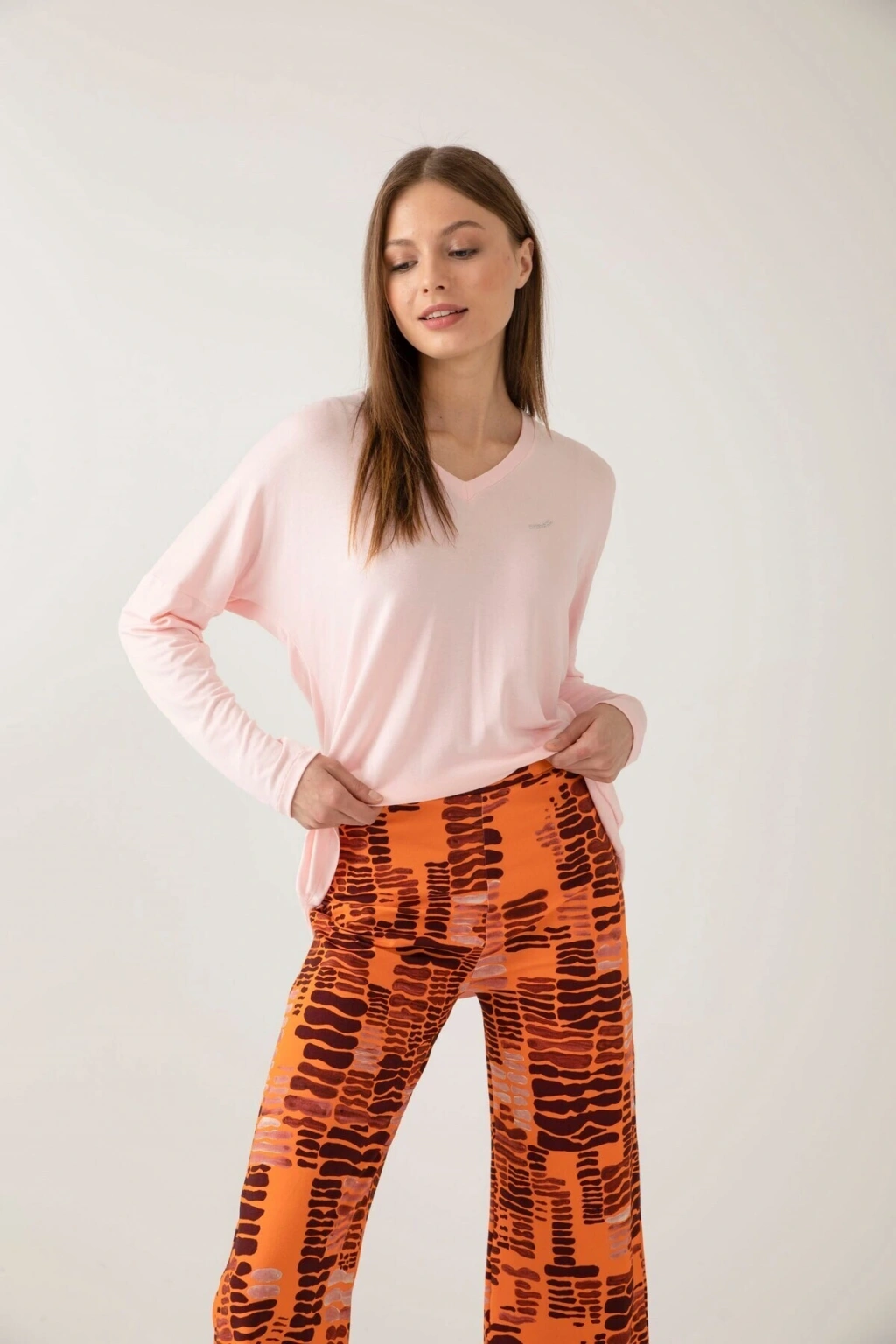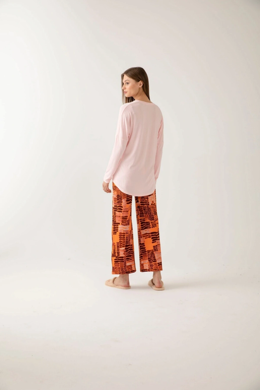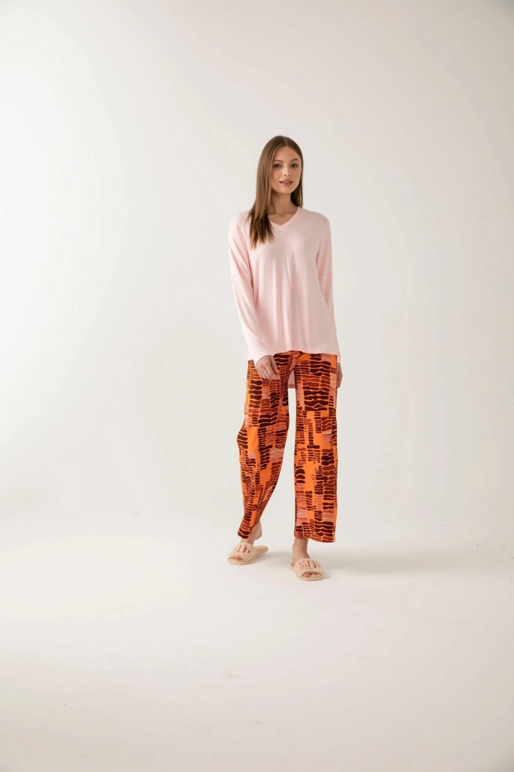 Uzun kollu tasarımı ile mevsim geçişlerinde ve serin akşamlarda konforlu bir kullanım sunar; Homewear koleksiyonunun bir parçası olarak evde şıklığı ve rahatlığı bir arada yaşatır; Her yaş grubuna hitap eden geniş beden skalası ile herkes için ideal bir seçimdir; Tarçın desenli şık görünümüyle ev giyimine modern bir dokunuş katar; Viskon karışımlı materyali sayesinde yumuşak dokusuyla cildinize nazikçe dokunur ve nefes alabilir yapıda olup konfor sağlar; Relaxed kalıbı ile vücudu sarmayan, rahat hareket etme özgürlüğü sunan bir yapıya sahiptir; İki parçadan oluşan set, hem üst hem de alt parça olarak tam bir uyum ve şıklık vaat eder; Örme kumaş tipi, esnek yapısıyla gün boyu rahatlık hissi verirken dayanıklılığı arttırır; Normal bel kesimi sayesinde rahat bir oturuş sağlar ve vücut hatlarınıza uyum içinde olur;