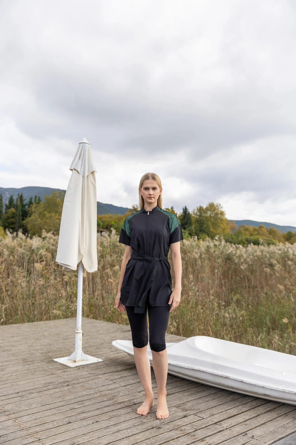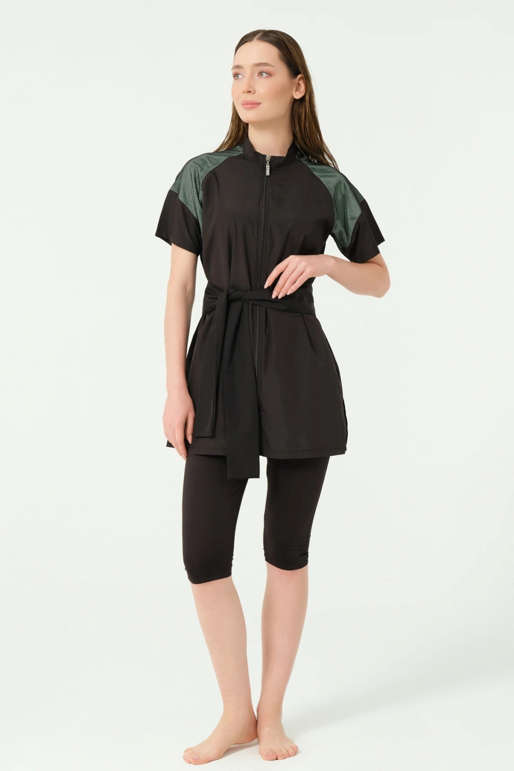 Spor Parmak Geçirmeli Uzun Tesettür Mayo DLX-24505