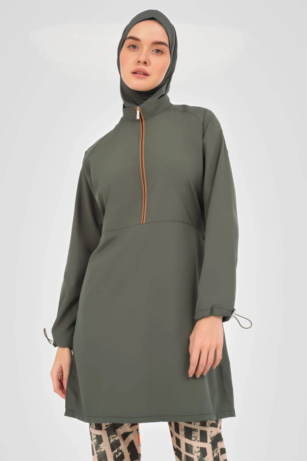 Spor Parmak Geçirmeli Uzun Tesettür Mayo DLX-24505