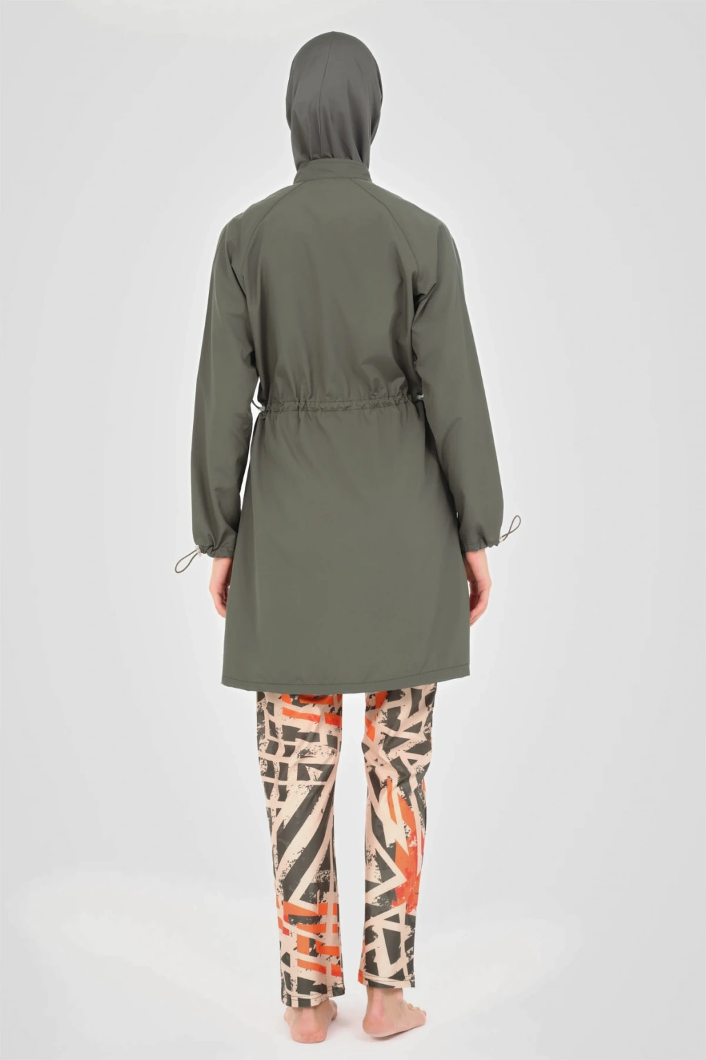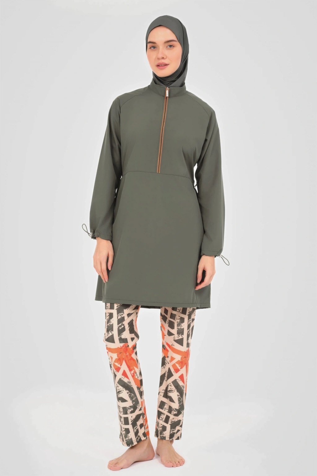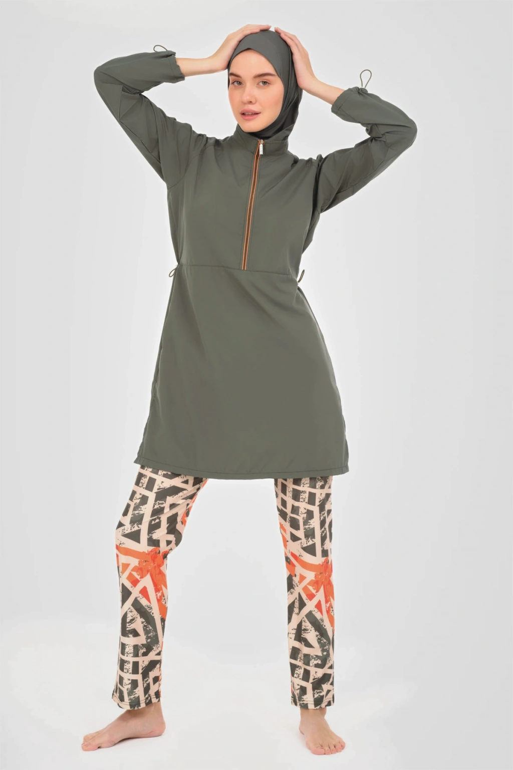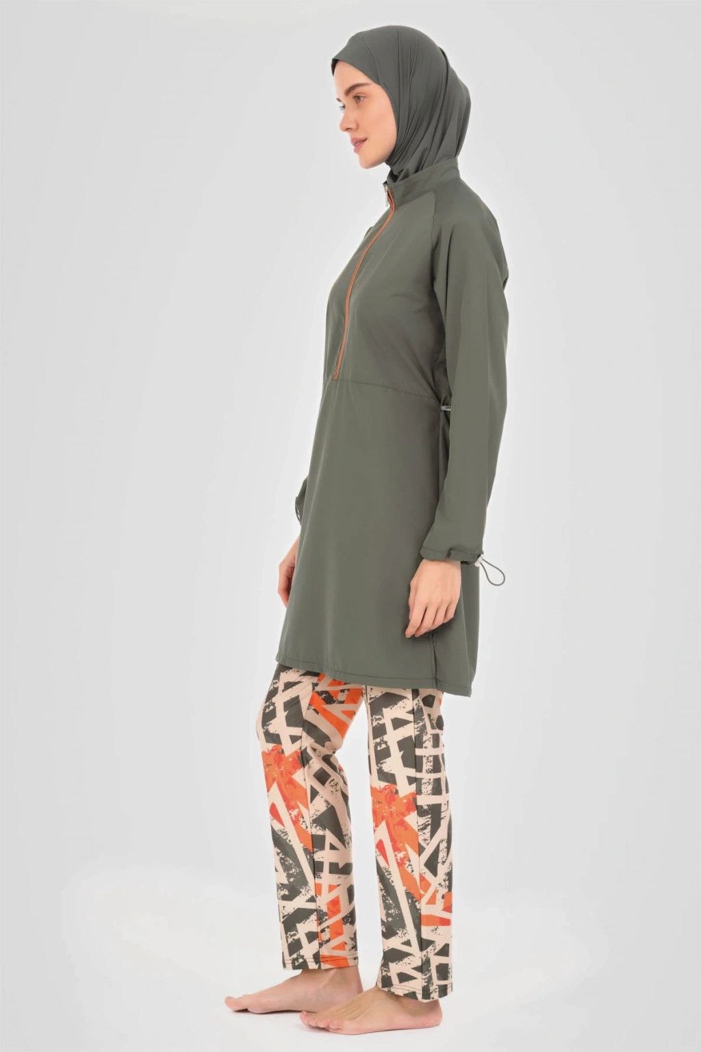 Reglan Kol Pantolonu Desenli Tesettür Mayo