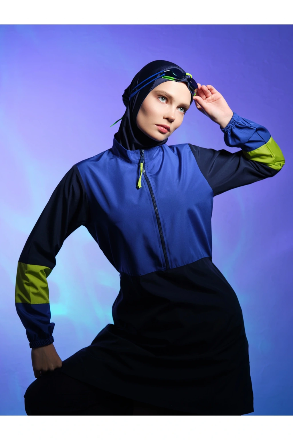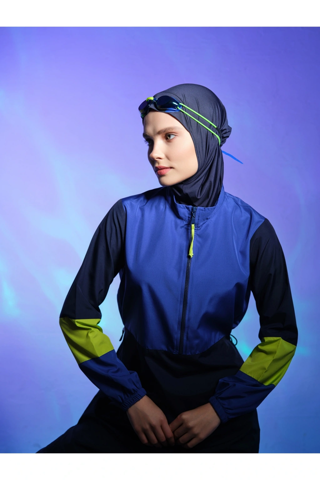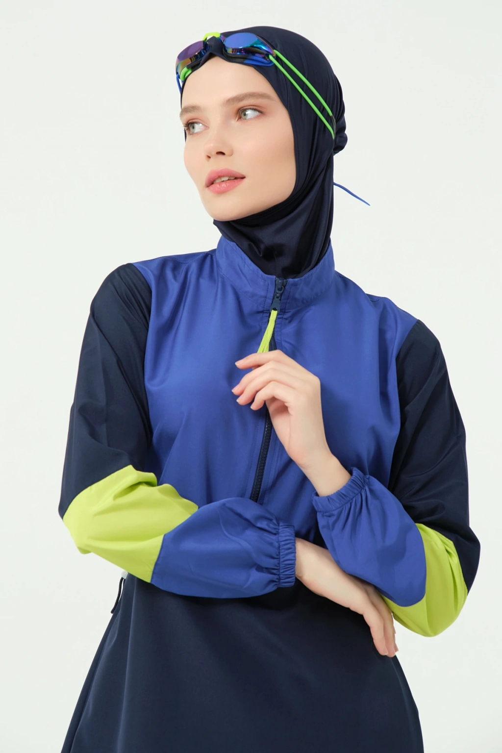 Spor Parmak Geçirmeli Uzun Tesettür Mayo DLX-24505