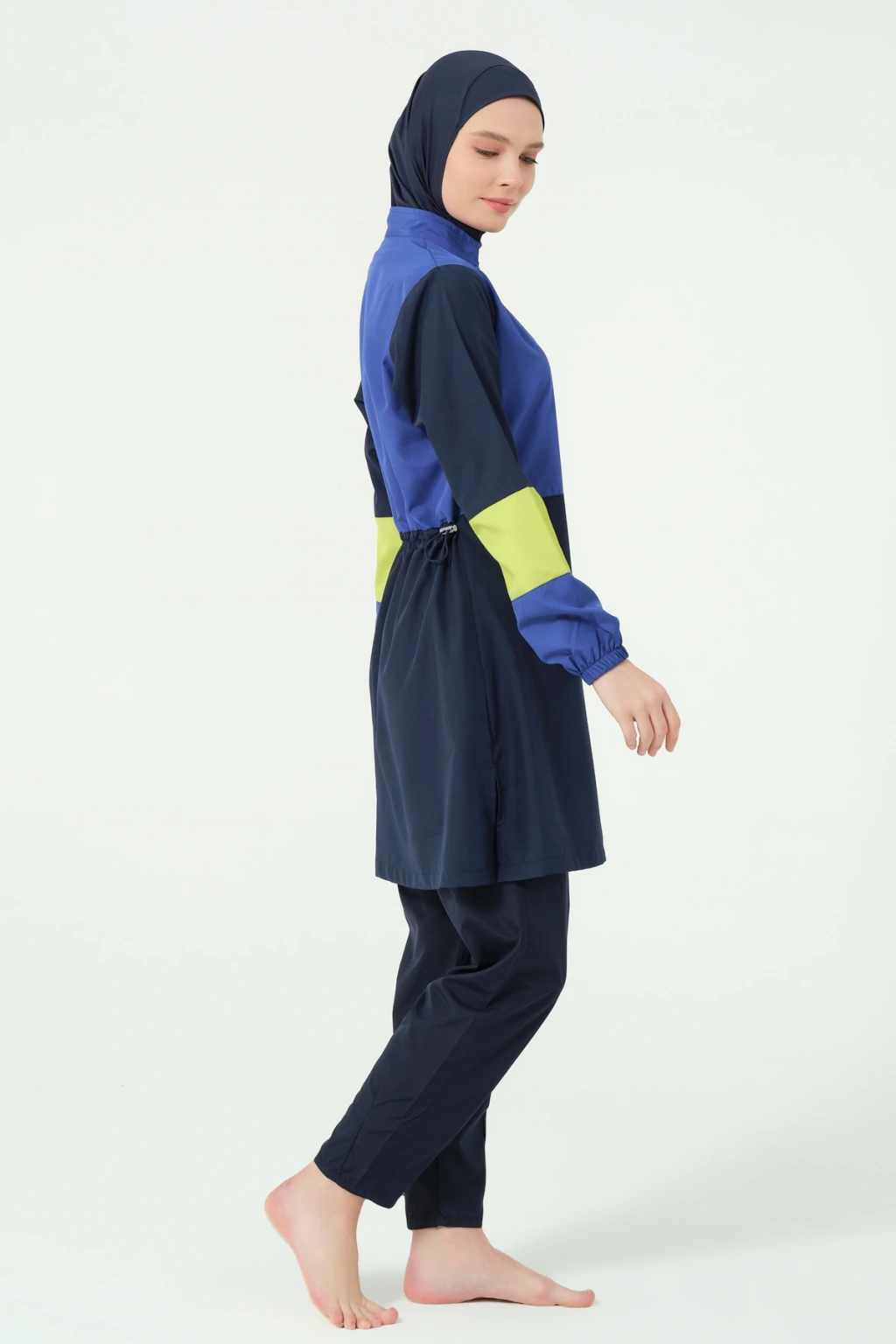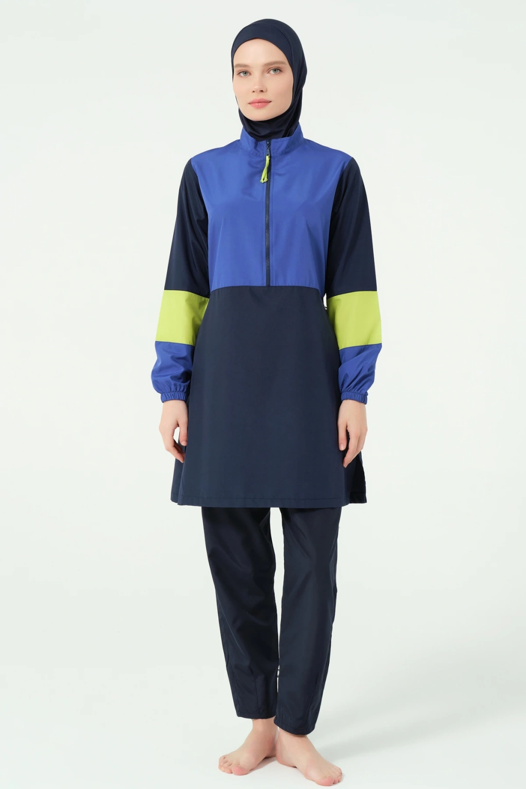 Lian Kıl Biye Detaylı Paraşüt Kumaş Tam Kapalı Tesettür Mayo Lacivert DLX-25289