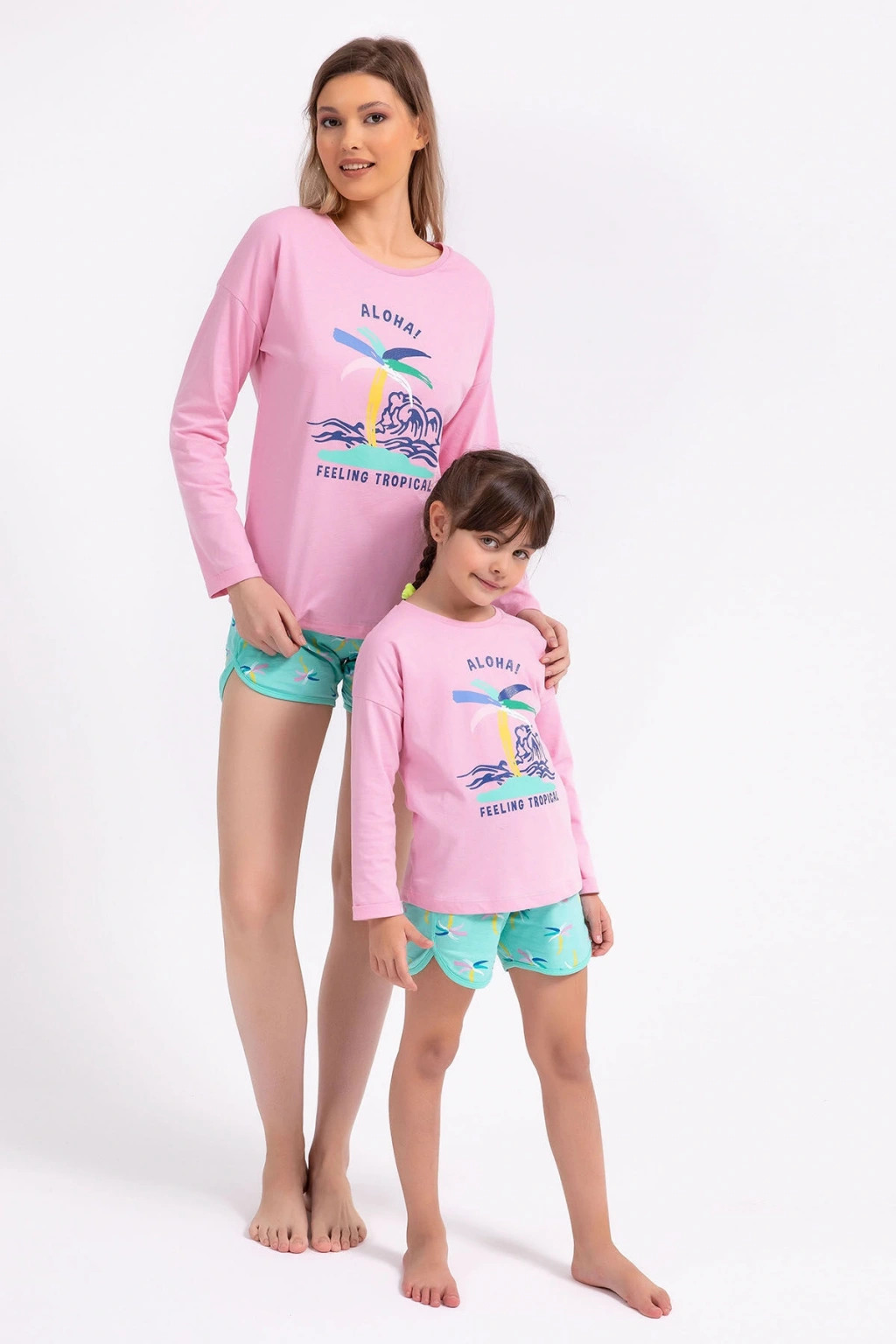 Rolypoly Feeling Tropical Pembe Kadın Uzun Kol Şort Takım