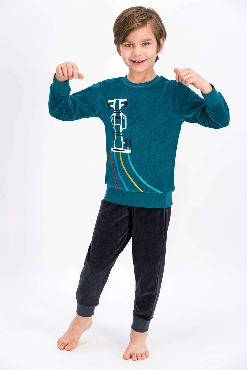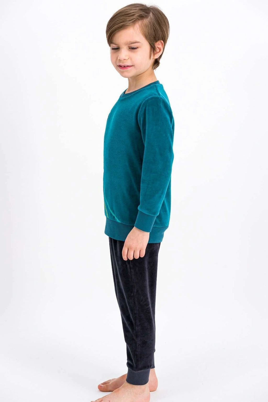 Sportif aktiviteler için ideal, çocukların rahat hareket edebileceği regular kalıpta tasarlanmıştır; Yüksek kaliteli kadife dokuma kumaşı ile yumuşak bir dokunuş sunar ve konforlu bir kullanım sağlar; %80 pamuk ve %20 polyester karışımından oluşan materyal bileşeni, nefes alabilirlik ve dayanıklılık sunar; Canlı yeşil renk seçeneğiyle dikkat çeken bu eşofman takımı, enerjik ve şık bir görünüm kazandırır; Regular boy kesimi sayesinde çocukların vücut hatlarına uyum sağlar ve rahat bir giyim deneyimi sunar;