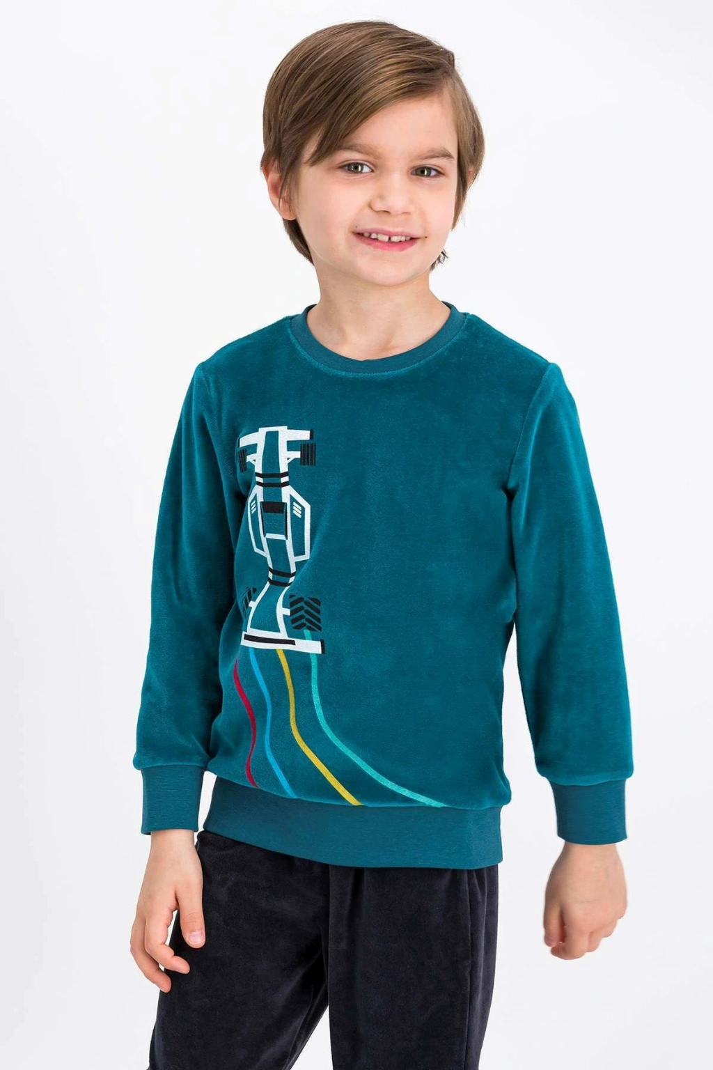 Rolypoly Formula Yeşil Erkek Çocuk Kadife Eşofman Takımı