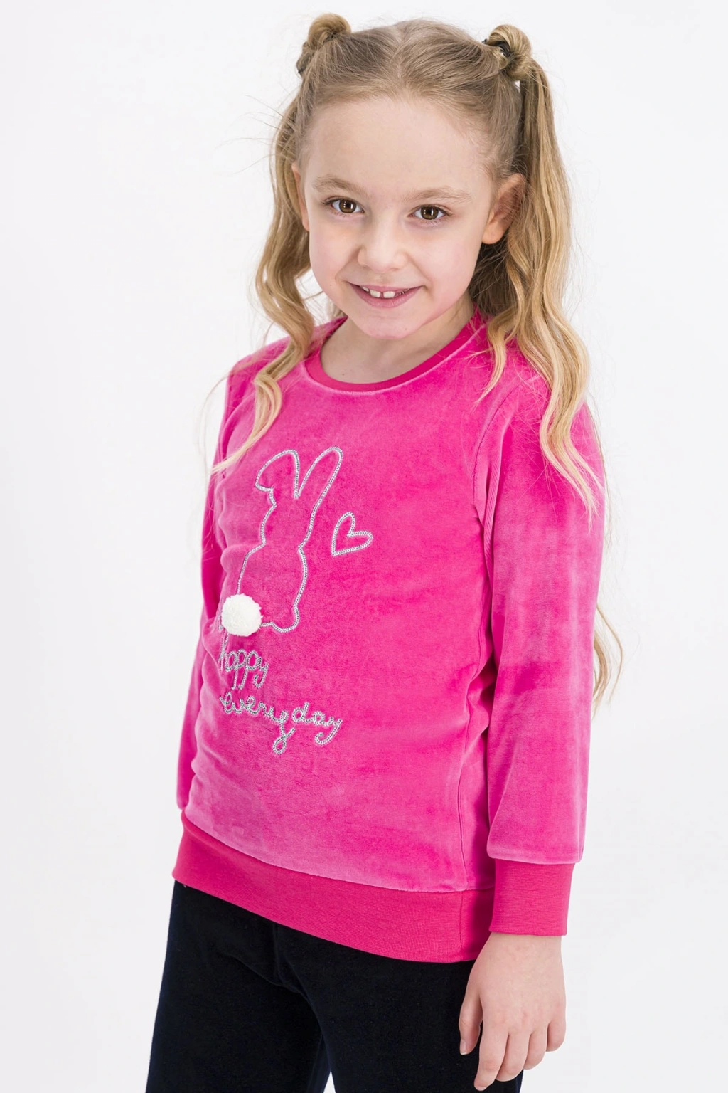 Rolypoly Happy Everyday Şeker Pembe Kız Çocuk Kadife Eşofman Takımı