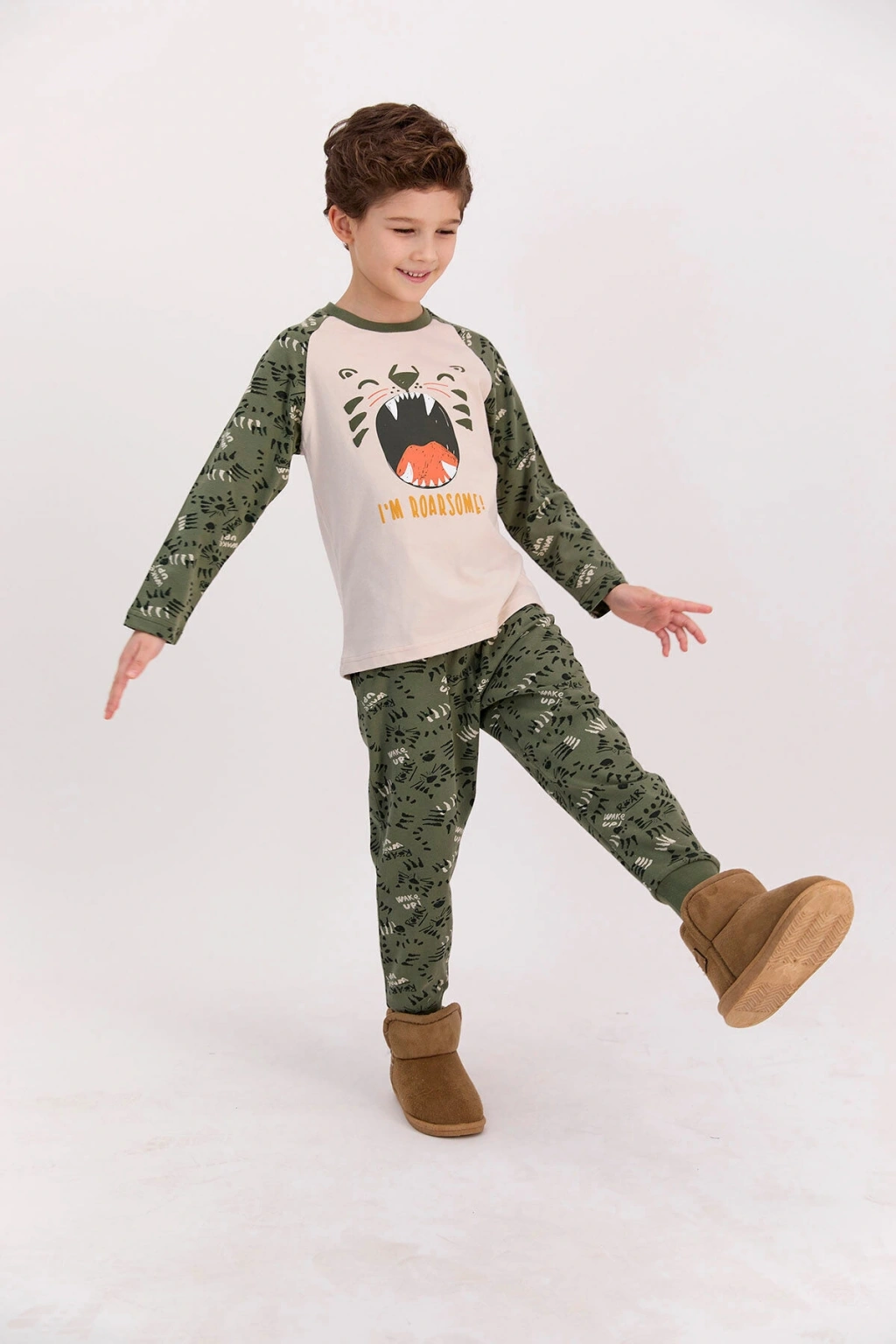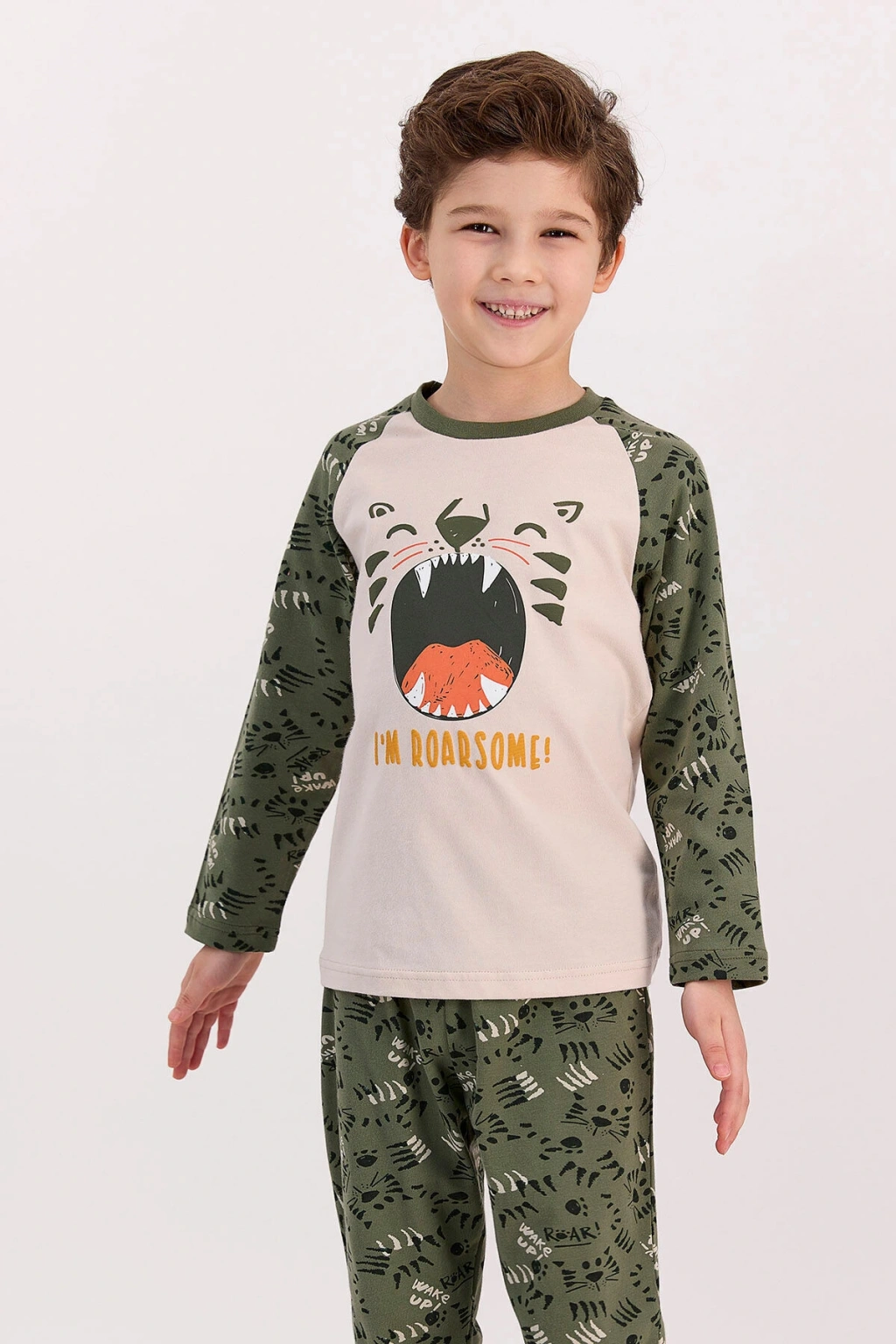 RolyPoly I'm Roarsome Kum Beji Erkek Çocuk Pijama Takımı kum bejinin enerjisini bünyesinde taşıyan bir üründür. ; Birbiriyle tam bir uyum içerisinde bulunan alt ve üst parçadan meydana gelen pijama takımı, kullanışlılık vadetmektedir. ; %100 pamuktan imal edilen ve nem transferine olanak tanıyan üst parça, gövde kısmında simetrik bir “I’m Roarsome” yazısı ile hareketlendirilmiştir. ; Bunun yanı sıra yazının üstüne sevimli bir hayvan figürü oturtulmuştur. ; RolyPoly I'm Roarsome Kum Beji Erkek Çocuk Pijama Takımı kapsamında yer alan alt parça ise kum beji zemin üzerinde minik ve tatlı figürlere sahiptir. ; Tamamen pamuk penyeden üretilen ve yumuşak yapısı ile dikkatleri üzerine çeken ürün, çocuklarınıza bir pijama takımından çok daha fazlasını sunmaktadır. ; Stok Kodu : RP2534-C-V2 Marka : Rolypoly Renk : 21k Kum Kumaş İçerik : Üst Kumaş : %100 Pamuk, Alt Kumaş : %100 Pamuk Kumaş Tipi : Üst Kumaş : Süprem, Alt Kumaş : Süprem FİYATLAR SEÇİLEN BEDENLERE GÖRE FARKLILIK GÖSTEREBİLİR. ; ConnectProf © tarafından yayınlanmıştır.;