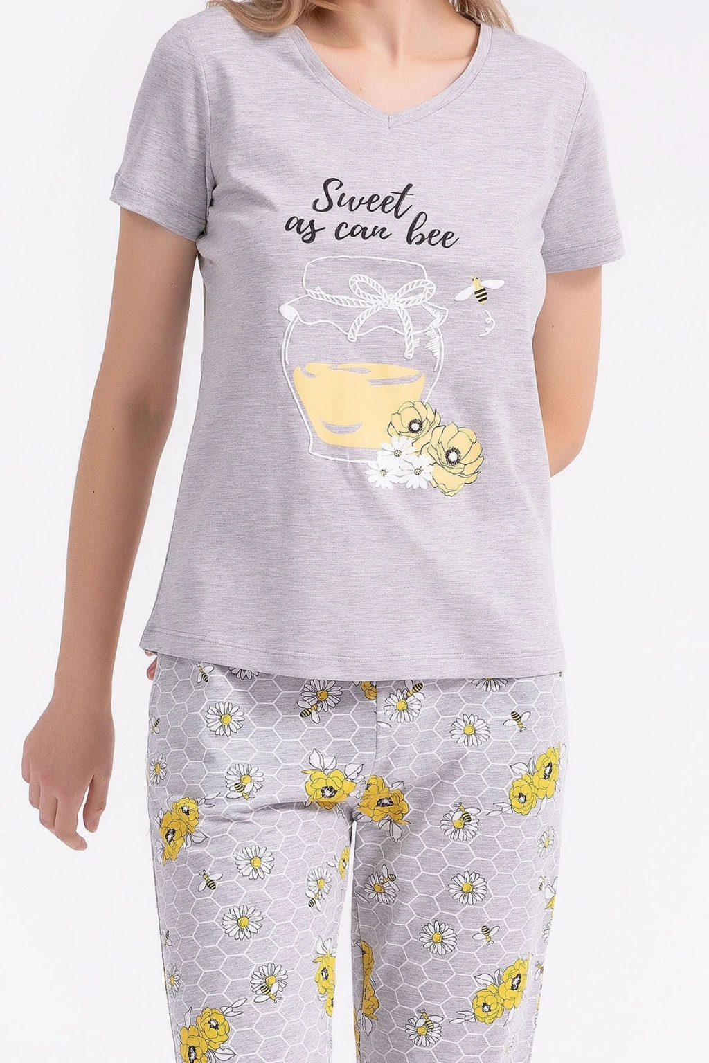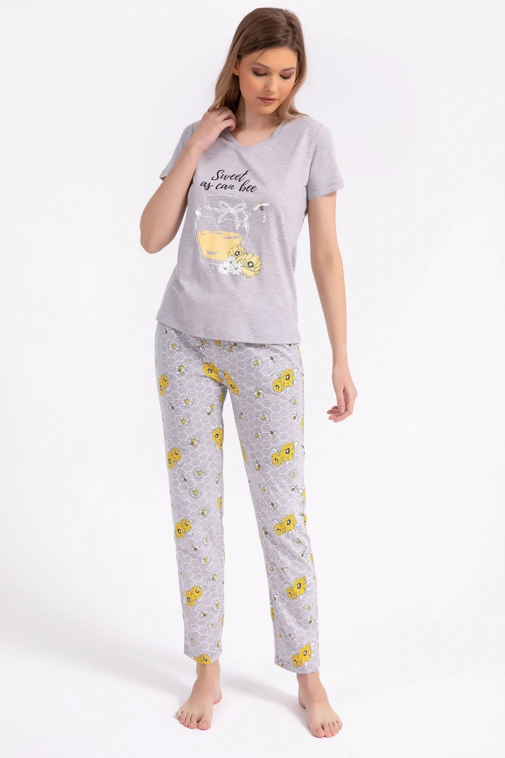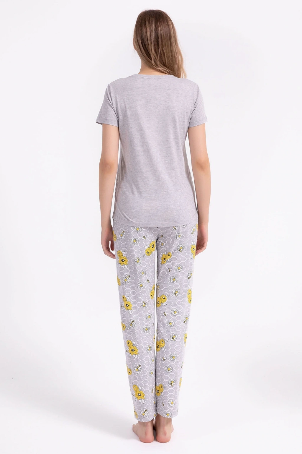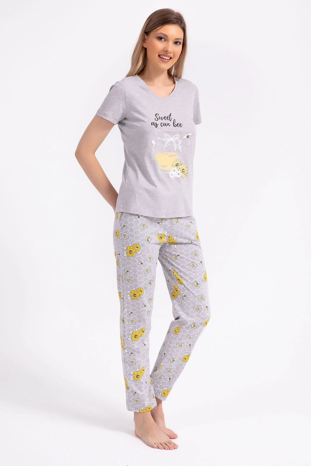 25109 Kadın V Yaka Kısa Kollu Bol Paçalı Pijama Takım