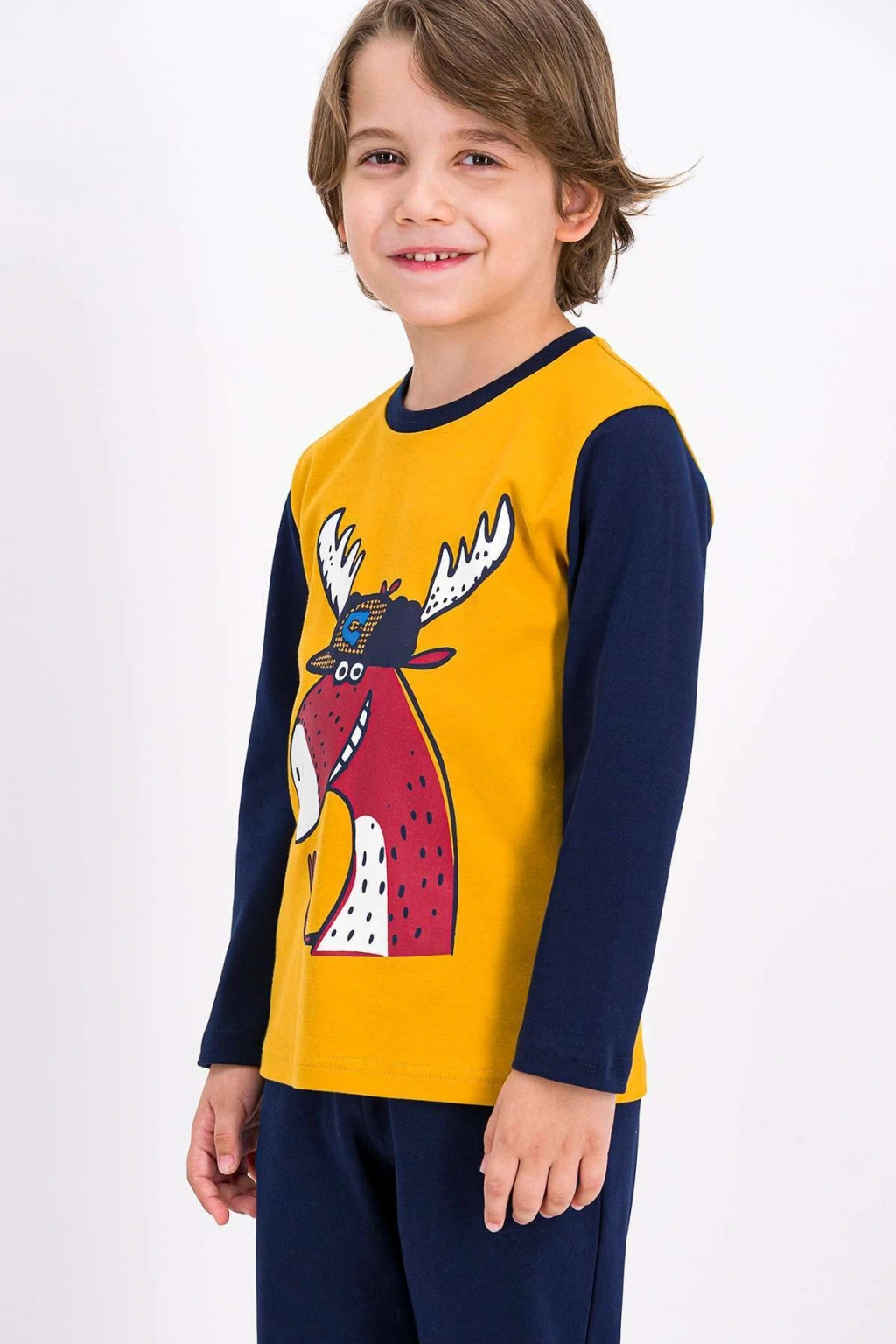 Regular kalıp ile rahat hareket etme özgürlüğü sunar, çocukların konforunu ön planda tutar; Type 1 yıkama talimatına uygun şekilde kolayca temizlenebilir, böylece pijama takımının uzun ömürlü kullanımı desteklenir; Boru paça tasarımı ile modern ve şık bir görünüm kazandırırken, aynı zamanda pratik kullanım imkanı sunar; Interlok dokuma tipi sayesinde esneklik ve dayanıklılık bir arada; hareket halindeyken bile konforlu bir deneyim sağlar; Dokuma kumaş tipi, ürünün nefes alabilir yapısını korurken yumuşak bir dokunuş hissi verir; Homewear ortamına uygun olarak tasarlanmıştır; evde geçirilen zamanlarda ideal konforu sunar; Çocuklar için özel olarak üretilmiş yaş grubu, onların vücut yapısına uygun ergonomik bir tasarıma sahiptir; Regular boy kesimi ile her bedene uyum sağlayarak rahat bir uyku ortamı ol;