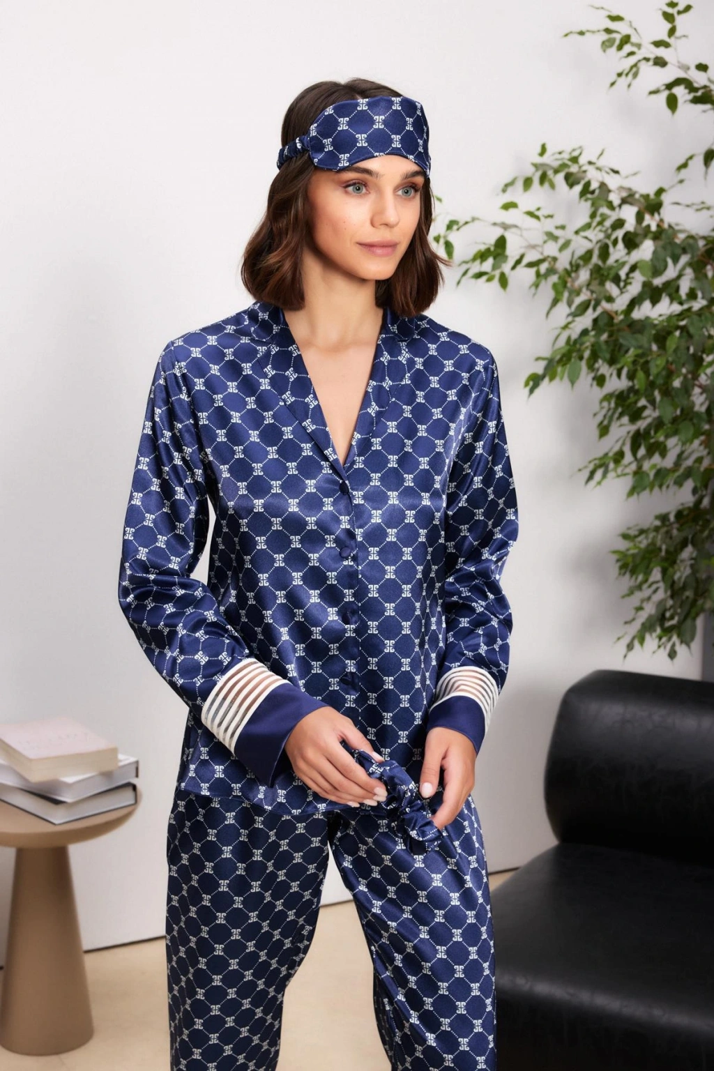 Saten Dantelli Pijama Takımı - 5 parçadan oluşmaktadır.; Pijama Üst, Pijama Alt, Uyku Bandı, Saç Bandı ve Kese.; Orijinal kutu içerisinde, birlikte paketlenmiştir.