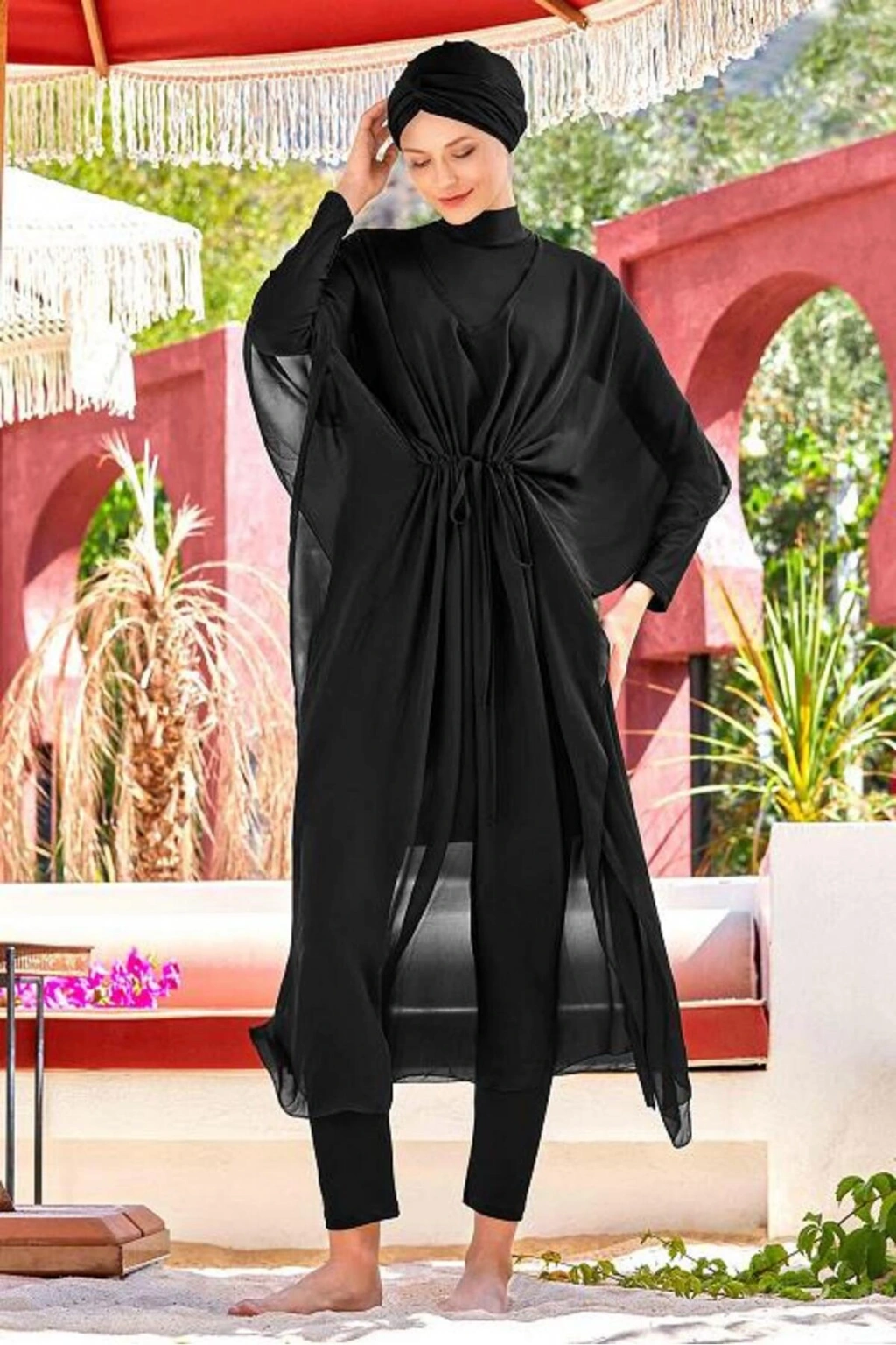 ADASEA SİYAH BELİ BAĞCIKLI TESETTÜR PAREO 6039