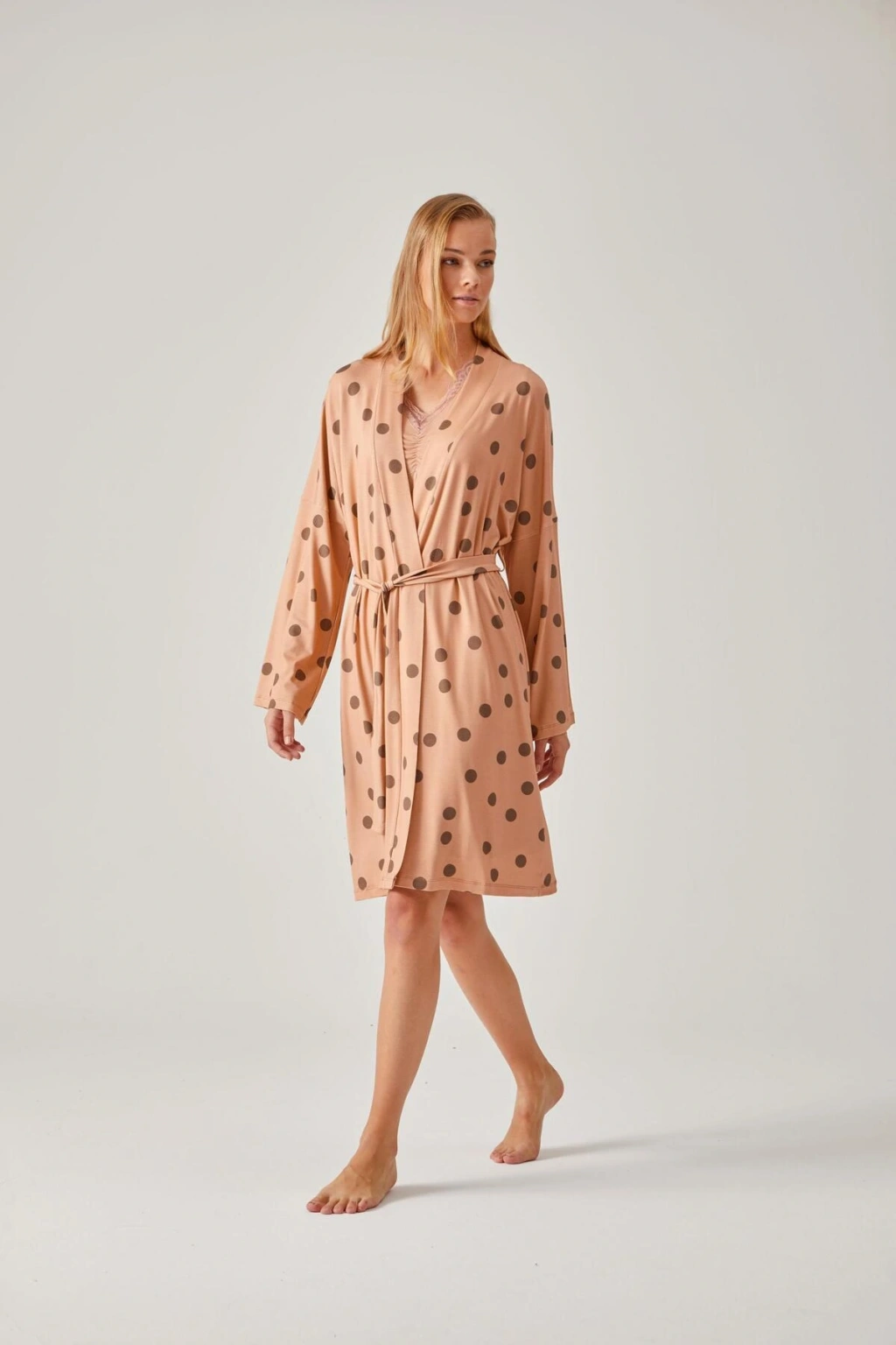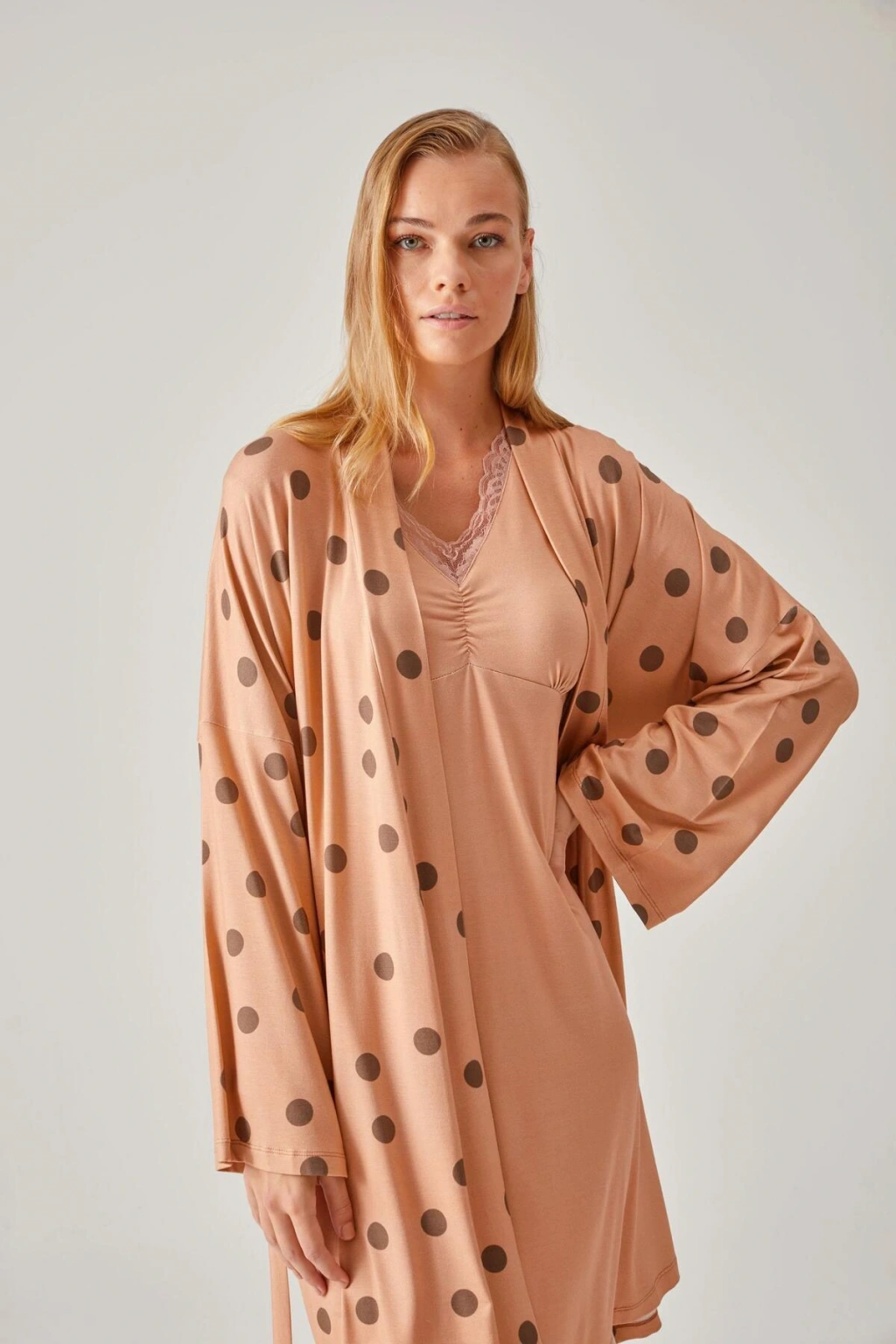 Kadın Pudra Fantezi Kimono Takım Saten 5355