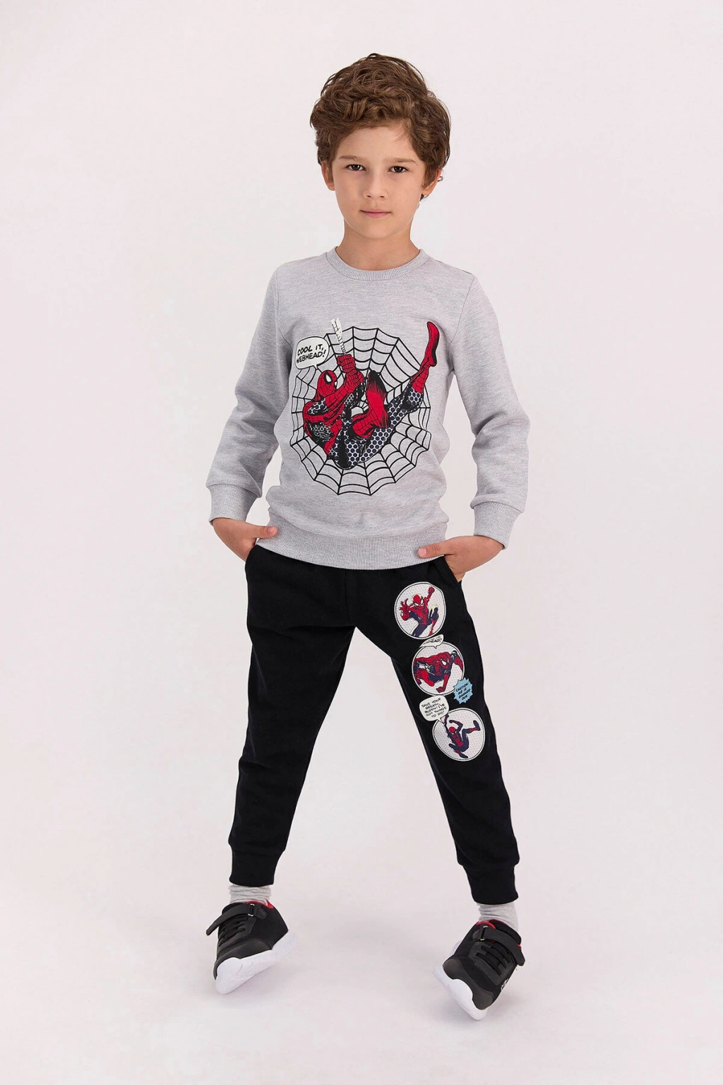 Spiderman Lisanslı Cool It Web Head Grimelanj Erkek Çocuk Eşofman Takımı havalı görünmek isteyen erkek çocuklarına titiz bir çalışma sonucunda sunulan ürünlerden bir tanesidir. ; Pijama takımında yer alan Spiderman detayları, filmi seven ve ilgi ile takip eden çocukların mutlu olmasını sağlar. ; Alt ve üst parça olmak üzere iki bölümden oluşan pijama takımının üst parçası grimelanj kumaş yapısına sahiptir. ; Ağ içerisinde kocaman bir Spiderman baskısı bulunmakta ve bu baskı simetrik yapısıyla dikkatleri üzerine çekmektedir. ; Ayrıca “Cool It Web Heard” yazısı minimalize edilerek Spiderman baskısının yanında yer almaktadır. ; Spiderman Lisanslı Cool It Web Head Grimelanj Erkek Çocuk Eşofman Takımı alt parçası ise baloncuk içerisinde üç ayrı Spiderman baskısıyla hareketlenmiştir. ; Stok Kodu : D4620-C-V1 Marka : Spiderman Renk : Grimelanj Kumaş İçerik : %100 Pamuk Kumaş Tipi : Üç İplik FİYATLAR SEÇİLEN BEDENLERE GÖRE FARKLILIK GÖSTEREBİLİR. ; ConnectProf © tarafından yayınlanmıştır.;