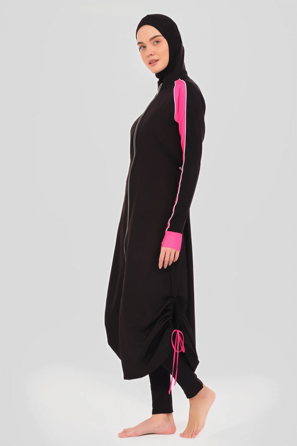 Spor Parmak Geçirmeli Uzun Tesettür Mayo Plajın enerjisini yansıtan desenli tesettür mayomuz, dinamik tasarımıyla dikkat çekiyor. ; Yazın her anında konfor ve şıklığı bir arada yaşayın. ; Tanım Su itici apreli. ; Üst paraşüt kumaş. ; Kıl biye süslemeli. ; Önü fermuar kapamalı. ; Dik yaka. ; Likra uzun kol. ; Etekleri büzmeli. ; Likra tayt. ; Likra eşarp ve bone. ; Tek parça iç çamaşır. ; Uzun tasarım. ; Paket İçeriği Üst, Tayt, Eşarp, Bone, Tek parça iç çamaşırı olmak üzere 5 parçadan oluşmaktadır. ; Hızlı kuruma, kolay yüzme olanağı sağlar. ; Kumaş İçeriği Ana Kumaş : %100 Poliester, Su itici paraşüt kumaş . ; Yardımcı Kumaş : %95 Poliester, %5 Elastan, Su itici apre uygulanmıştır.;