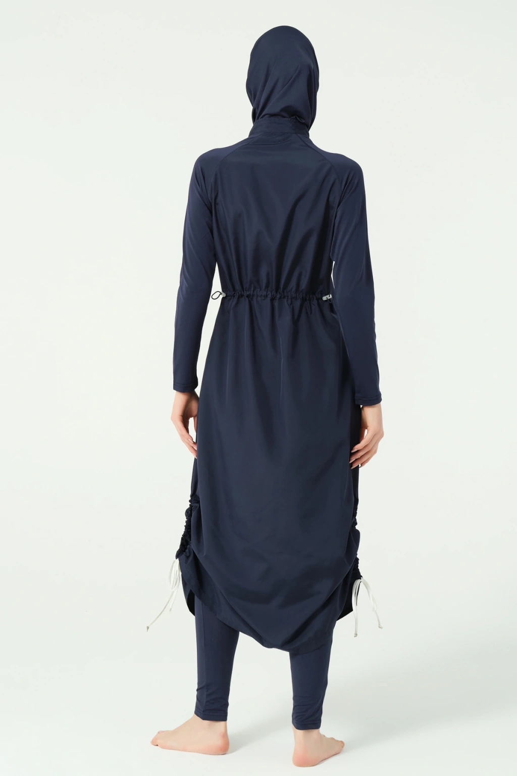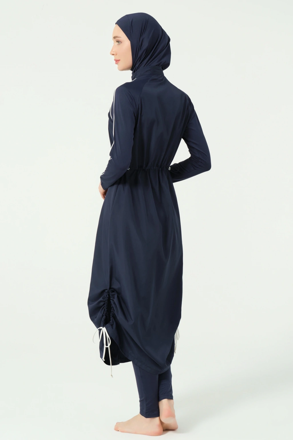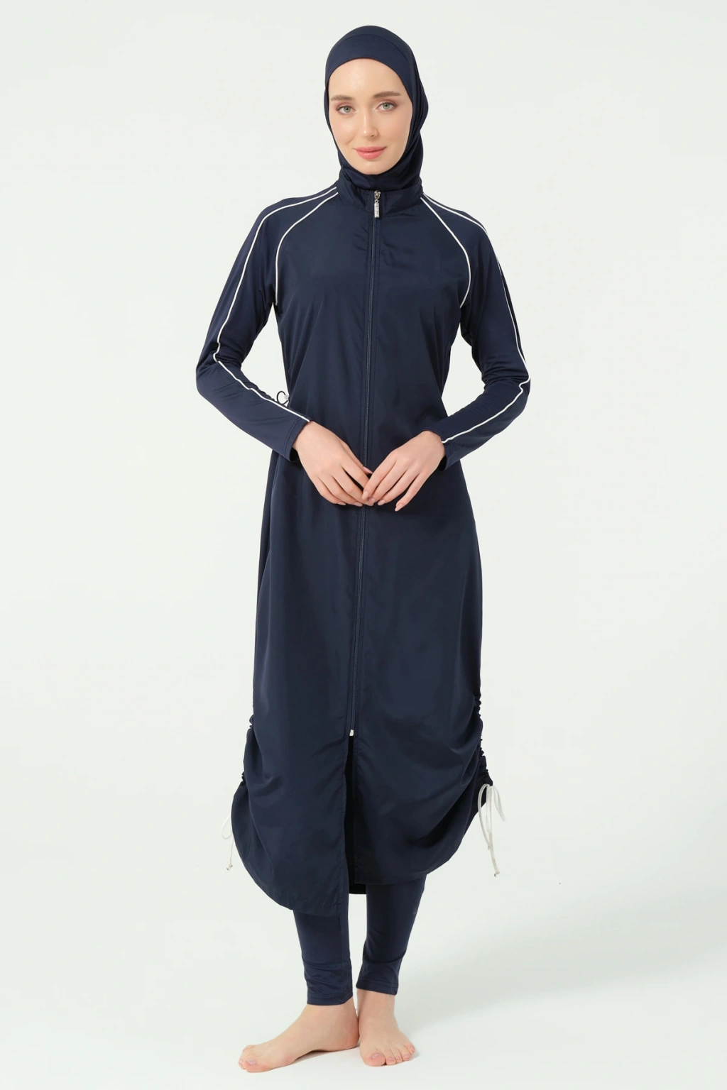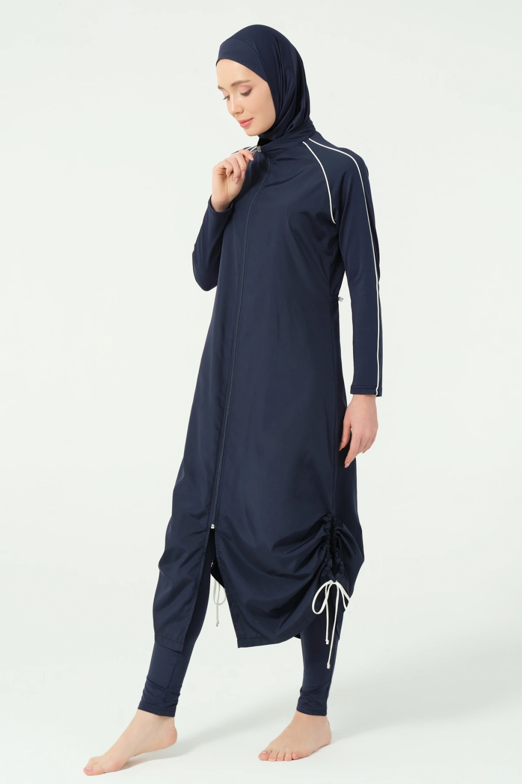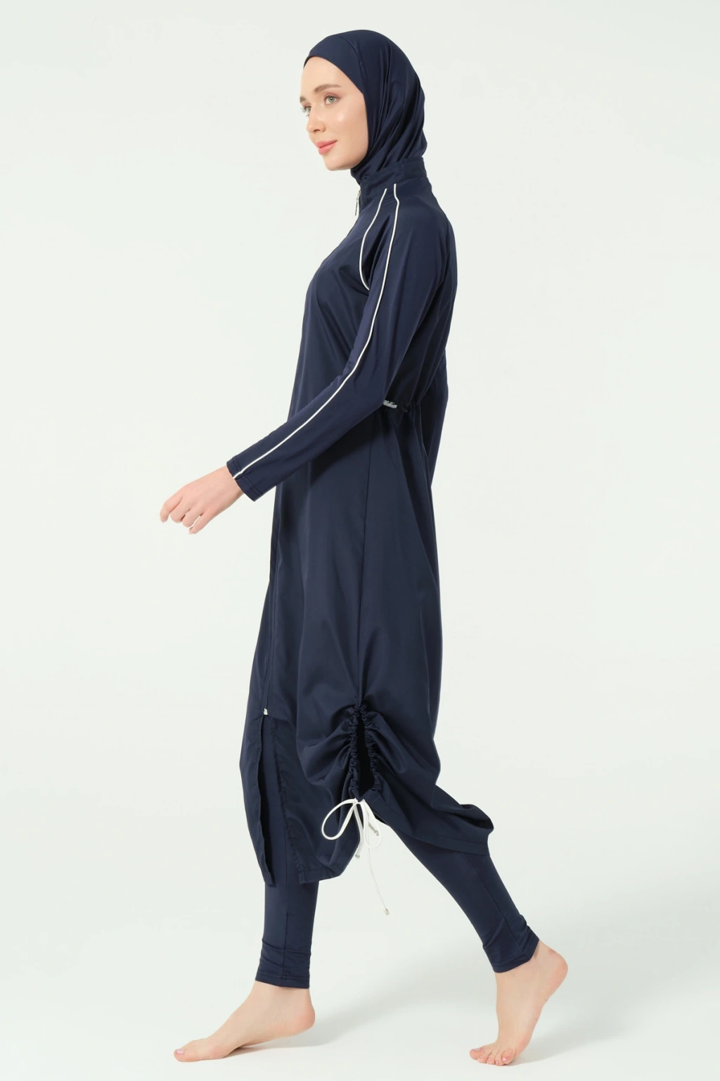 TR: Üst, Tayt, Eşarp, Bone, Tek parça iç çamaşırı olmak üzere 5 parçadan oluşmaktadır. Hızlı kuruma, kolay yüzme olanağı sağlar.